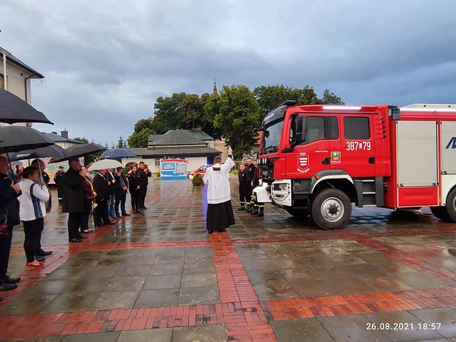 Poświęcony został średni samochód ratowniczo-gaśniczy marki MAN TGM 13.290 z napędem 4x4 (rok prod. 2021). Strażacy kupili pojazd dzięki ogromnemu wsparciu od polskiego rządu. Otrzymali bowiem dotację z Wojewódzkiego Funduszu Ochrony Środowiska i Gospodarki Wodnej w Lublinie w wysokości 104 tys. zł, z Ministerstwa Spraw Wewnętrznych i Administracji - 346 tys. zł. Gmina Szczebrzeszyn dołożyła 376 tys. 560 zł. W sumie więc wóz kosztował 826 560 zł.