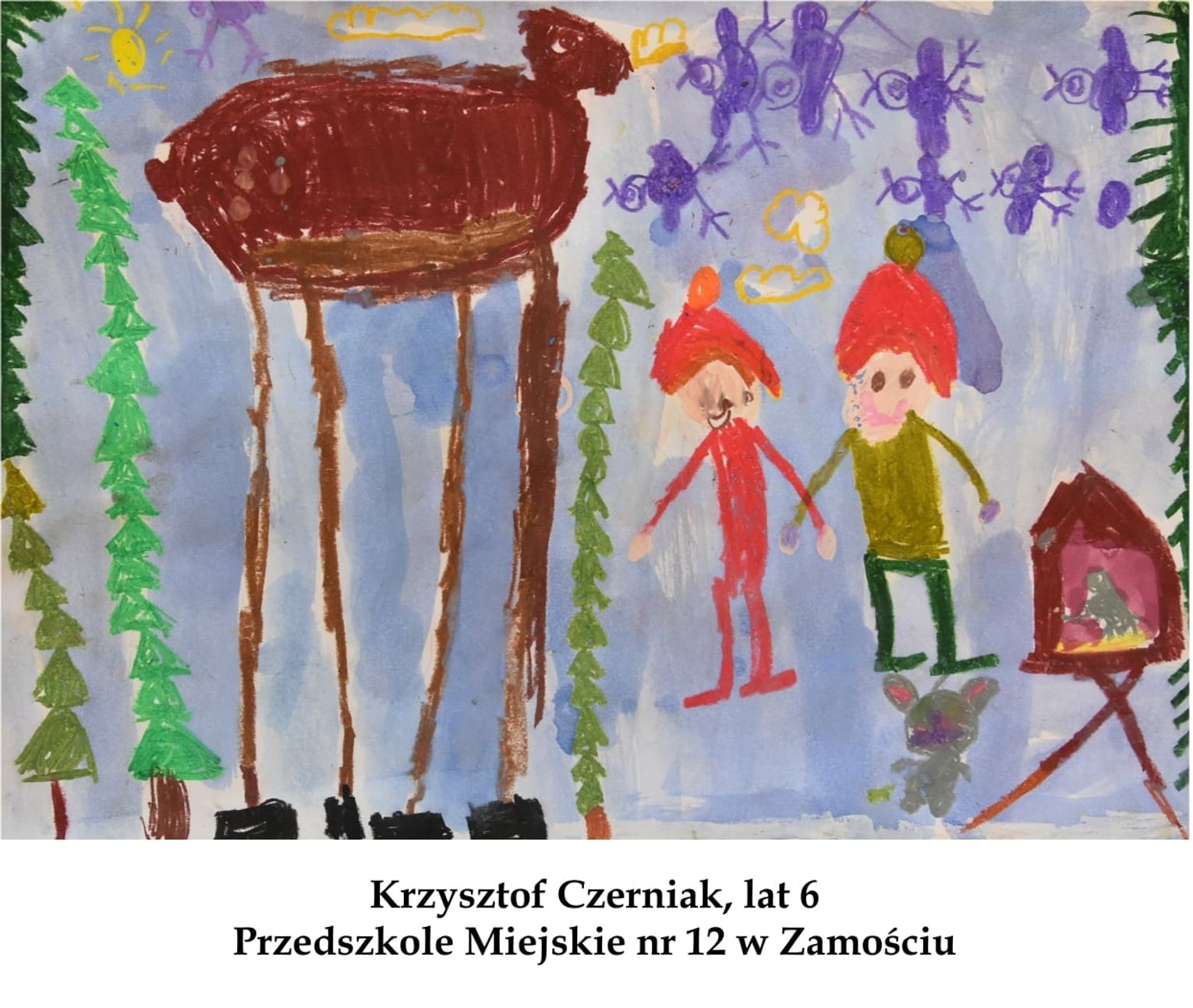 W kategorii przedszkolaków i zerówkowiczów pierwsze miejsce przyznano Mikołajowi Morskiemu (lat 5, Przedszkole Miejskie nr 1 w Zamościu), drugie dostała Zuzanna Kowalska (lat 6, Szkoła Podstawowa im. Jana Pawła II w Księżpolu), trzecie Emilia Walczak (lat 3, Zespół Szkolno-Przedszkolny w Łabuńkach Pierwszych). Wyróżniono prace, które przygotowali: Krzysztof Czerniak (lat 6, Przedszkole Miejskie nr 12 w Zamościu), Lena Rycak (lat 5, Przedszkole Samorządowe w Ruszowie).