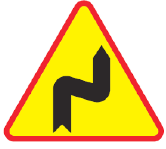 Znak A-3 „dwa niebezpieczne zakręty - pierwszy w prawo”