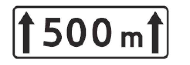 Jeżeli zakaz wyrażony znakami B-33, B-35, B-36, B-37, B-38, B-41 obowiązuje pomiędzy skrzyżowaniami na odcinku o długości do 500 m, to dopuszcza się umieszczanie pod znakiem tabliczki T-20 wskazującej długość odcinka drogi, na którym zakaz obowiązuje.
