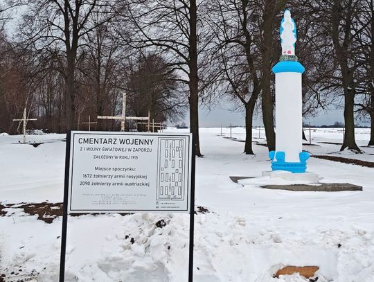 Ustawienie tablicy informacyjnej o historii cmentarza przy wejściu na teren obiektu.