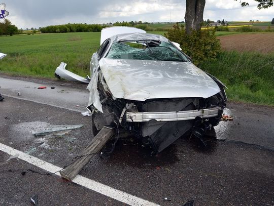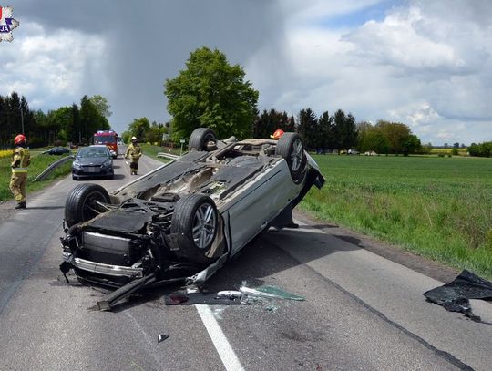 – Po zderzeniu, kierujący audi zjechał na lewe pobocze, później do przydrożnego rowu. Przejechał kilkanaście metrów rowem, a następnie uderzył w przepust, przemieścił się na jezdnie i dachował – dodaje jeszcze policjantka.
