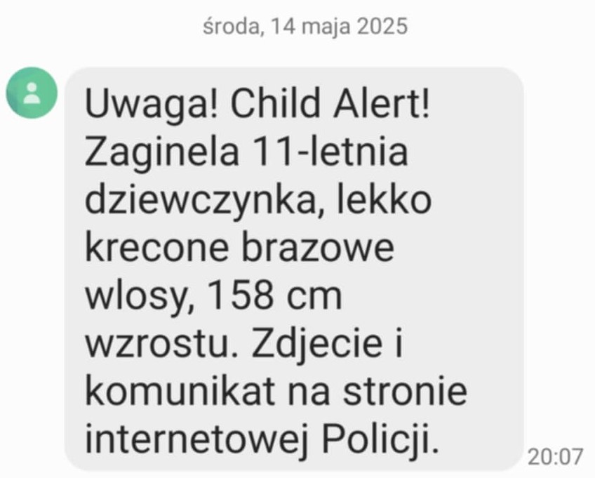 Policja ogłosiła Child Alert w związku z zaginięciem 11-letniej Patrycji. Dziewczynka zniknęła bez śladu we wtorek, 13 maja. Ostatni raz była widziana około godziny 12:30 w miejscowości Dziewkowice. Tego dnia odwiedzała swoich dziadków, skąd nie wróciła do domu i nie nawiązała kontaktu z rodziną. Poszukiwania rozpoczęły się natychmiast, a sytuacja została uznana za na tyle poważną, że następnego dnia, 14 maja ogłoszono Child Alert.