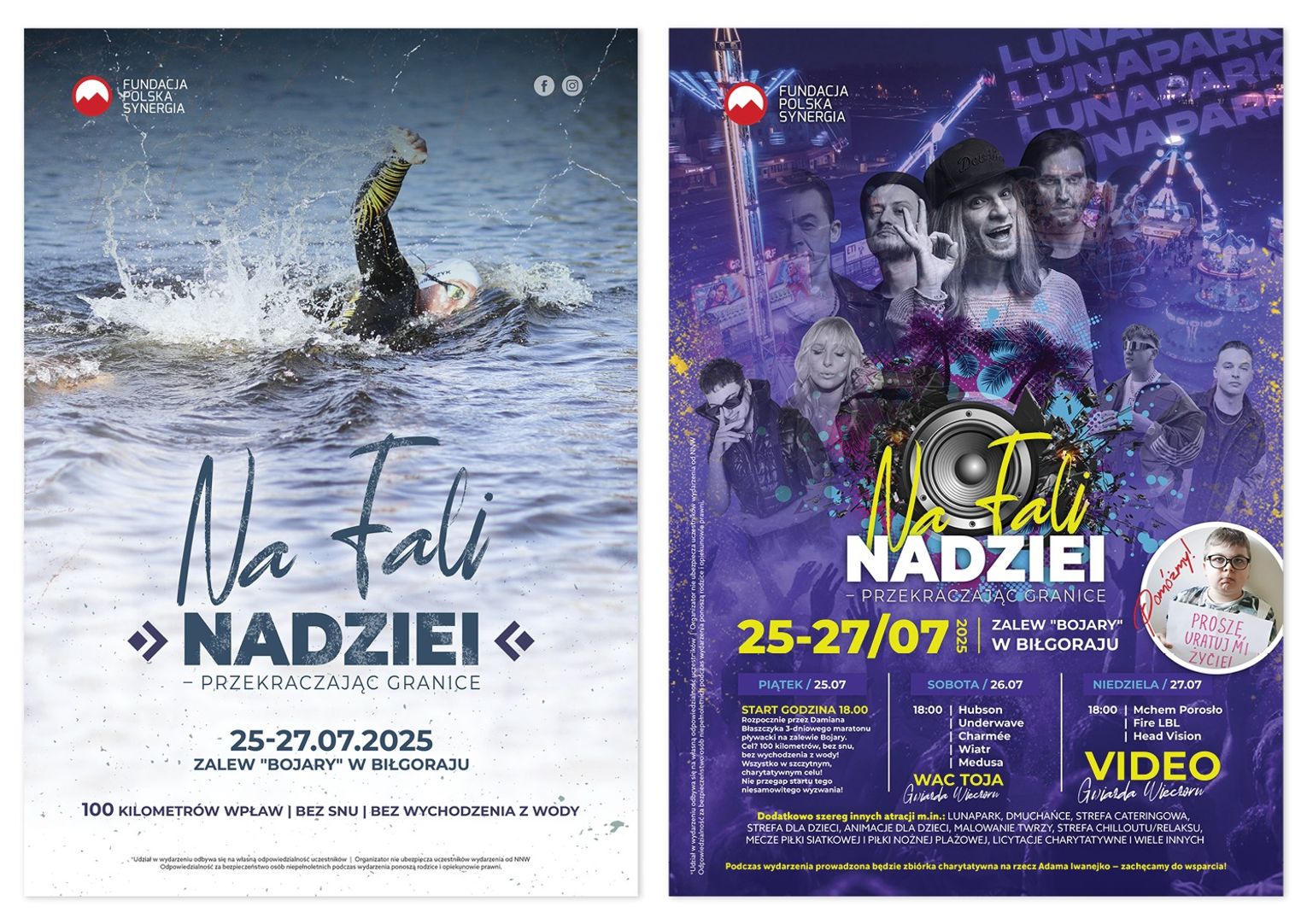 Ten nie lada wyczyn ma aspekt charytatywny. Podczas wydarzenia "Na fali nadziei - przekraczając granice" prowadzona będzie zbiórka pieniędzy na leczenie Adasia Iwanejko. To 12-letni chłopiec z Woli Małe (gm. Biłgoraj). Uczęszcza do piątej klasy Szkoły Podstawowej nr 3 w Biłgoraju. Gdy miał zaledwie dwa lata, lekarze zdiagnozowali u niego dystrofię mięśniową Duchenne’a – nieuleczalną, postępującą chorobę genetyczną, która prowadzi do całkowitej utraty sprawności. Na jego leczenie potrzeba 16 mln zł. Chłopiec wraz rodziną zbiera środki na terapie w Stanach Zjednoczonych.