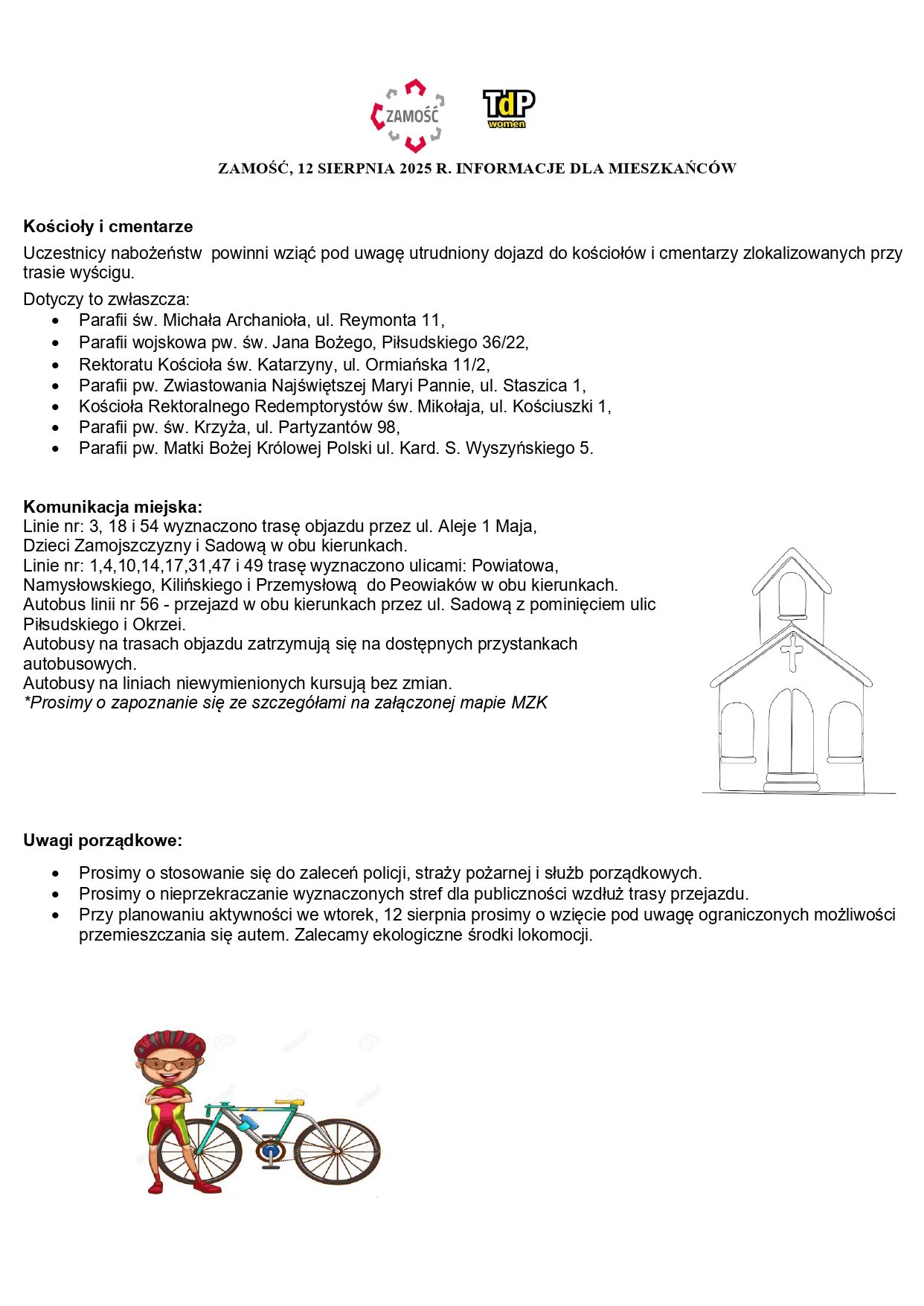 Służby apelują do mieszkańców o wcześniejsze zaplanowanie podróży, unikanie przejazdów samochodem przez centrum i stosowanie się do poleceń policji, straży pożarnej oraz organizatorów. Zalecane jest korzystanie z alternatywnych, ekologicznych środków transportu.