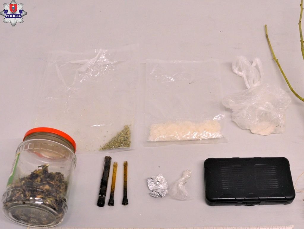 Policjanci z Krasnobrodu wspólnie z kryminalnymi z Zamościa w czasie przeszukania mieszkania, w którym przebywał 23-latek, odnaleźli susz roślinny i skrystalizowaną substancję w białym kolorze.