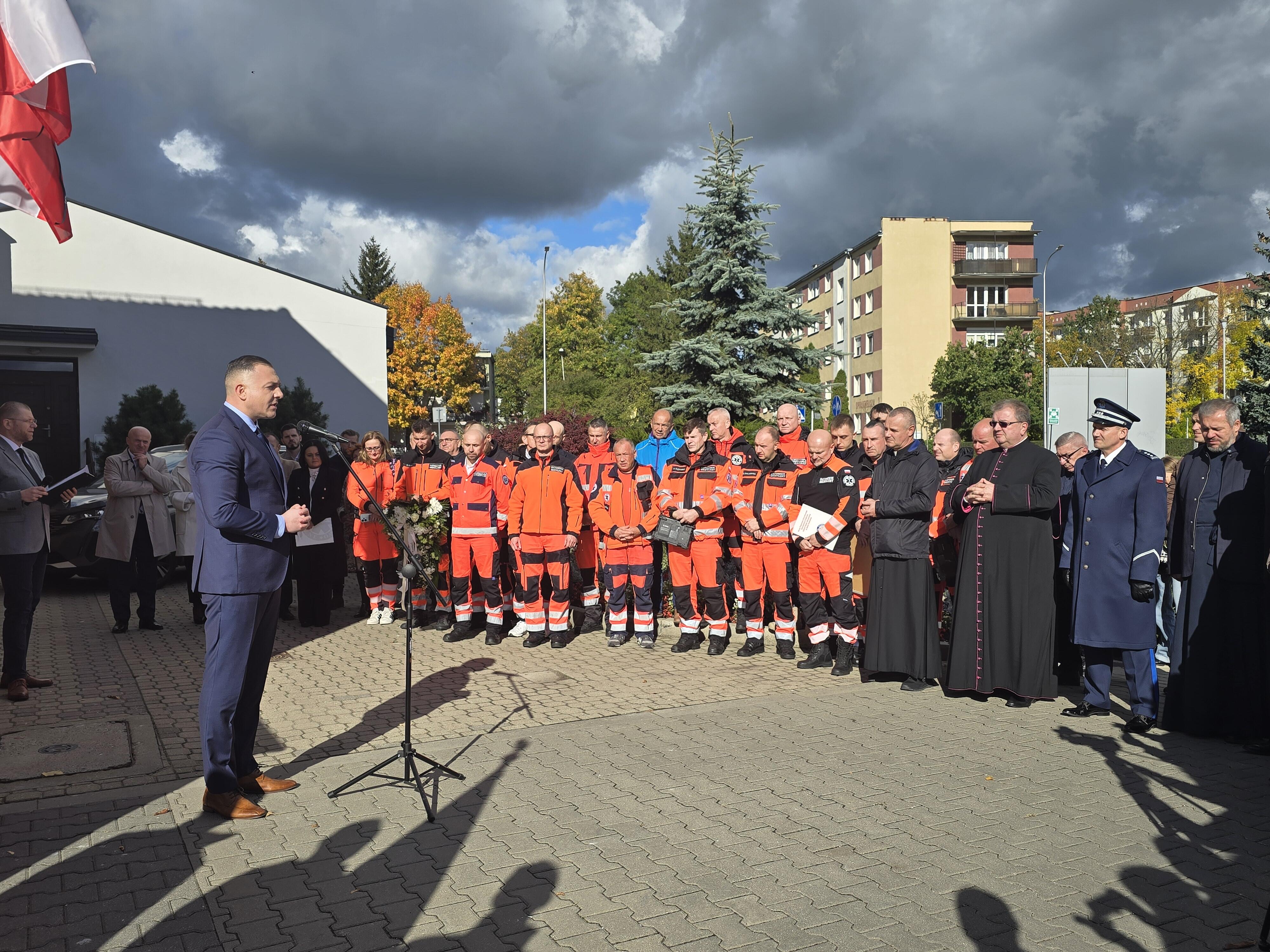 Marszałek odniósł się do tragicznej śmierci śp. Cezarego Lotkowskiego i napaści na innych ratowników medycznych. – Okazuje się, że będąc ratownikiem medycznym, będąc na służbie i pomagając drugiemu człowiekowi, można stracić życie. Wy jedziecie ratować życie ludzkie, wyjeżdżacie pomagać drugiemu człowiekowi. Okazuje się, że ten człowiek, ja bym go nazwał bestią, nagle wynagradza wam śmiercią. Śmiercią za to, że chcieliście mu pomóc. Ten dzień zmusza nas do refleksji, czy ratownik medyczny jest bezpieczny w swojej pracy. I trzeba wszystko zrobić, abyście wy, którzy stoicie na pierwszej linii, tak jak policjanci czy strażacy, mogli bezpiecznie wykonywać swoją pracę – zwrócił się do zebranych.