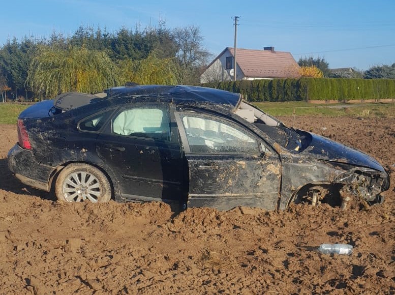 Czy 25-latka uczestniczyła w wypadku drogowym? Na pobliskich polach policjanci ujawnili rozbity samochód osobowy marki Volvo.