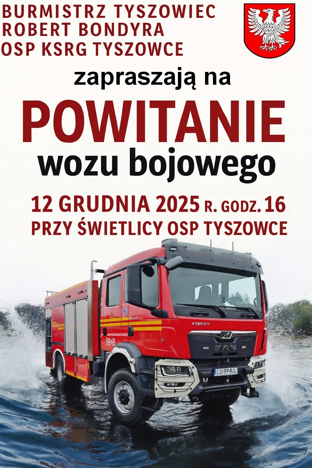 Strażacy z Tyszowiec w piątek 12 grudnia o godz. 16 organizują huczne powitanie samochodu w swojej siedzibie.