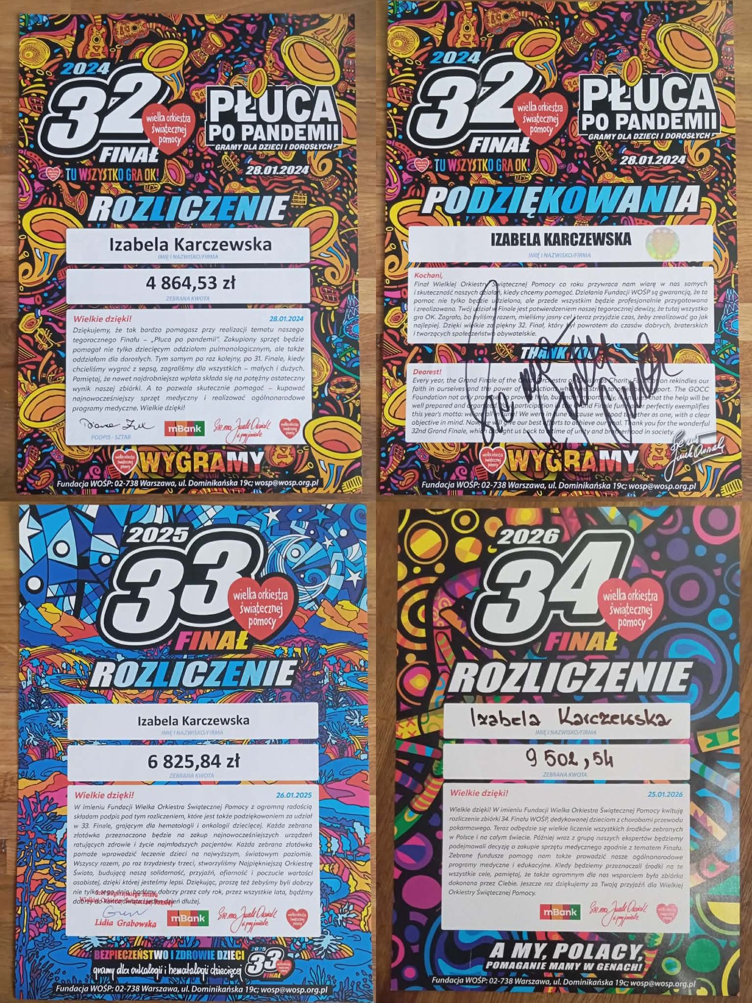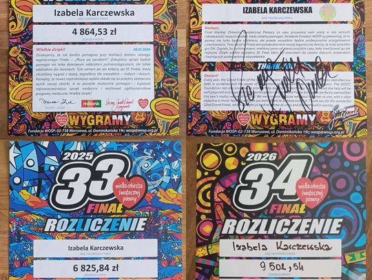 Iza rekordzistką biłgorajskiego sztabu jest od trzech lat. Jak podkreślają jej rodzice – Paulina Pokryszka-Karczewska oraz Piotr Karczewski – dziewczynka podczas corocznych zbiórek jest już rozpoznawana w Biłgoraju dzięki swojej czerwonej kurtce i czapce z logiem WOŚP. Zbiórka Izy zawsze rozpoczyna się o godz. 6.00, a kończy o 20.00.