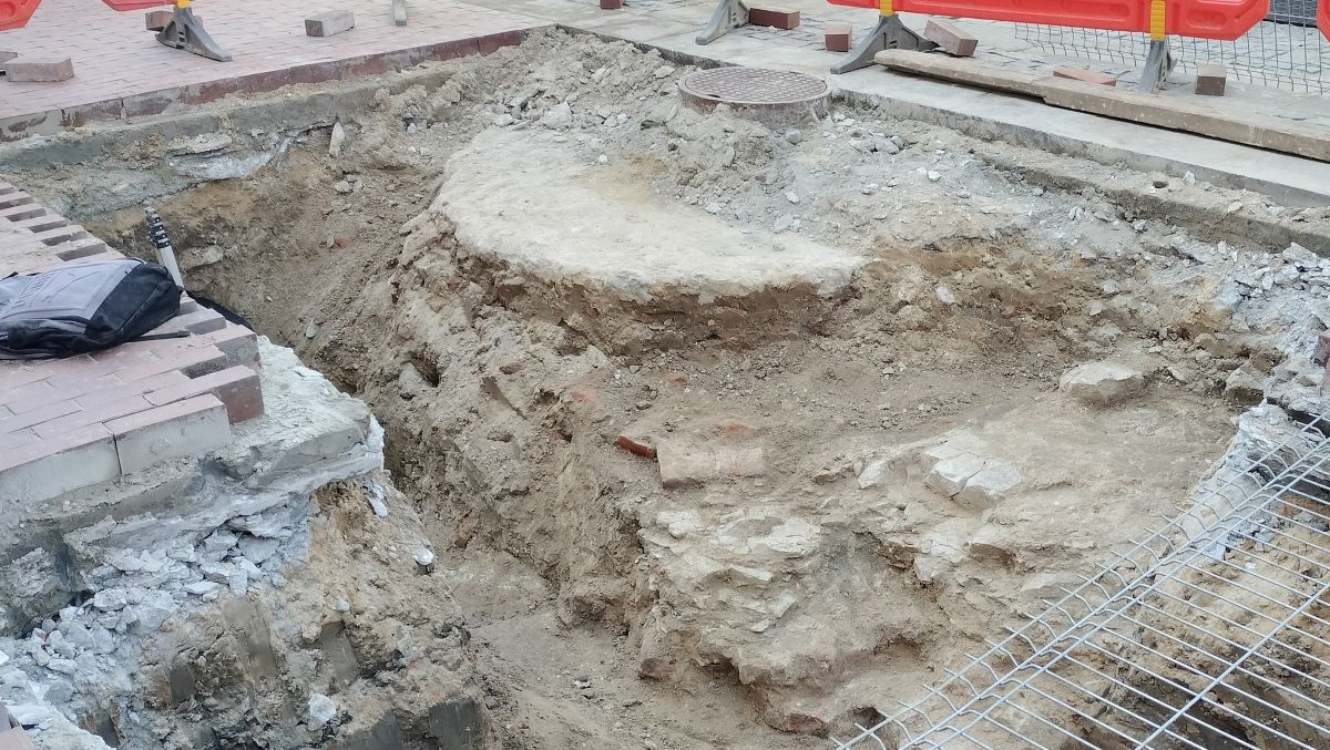 Mimo tych ograniczeń archeologom udało się nieznacznie poszerzyć wykop, co przyniosło wymierne efekty. Odsłonięto większy fragment reliktów studni, w tym betonowe półkole zabezpieczające jej cembrowinę oraz żeliwną pokrywę z 1979 roku, umożliwiającą dostęp do wnętrza obiektu. Elementy te pochodzą z okresu pierwszej rewaloryzacji rynku, przeprowadzonej przed centralnymi dożynkami w 1980 roku.
