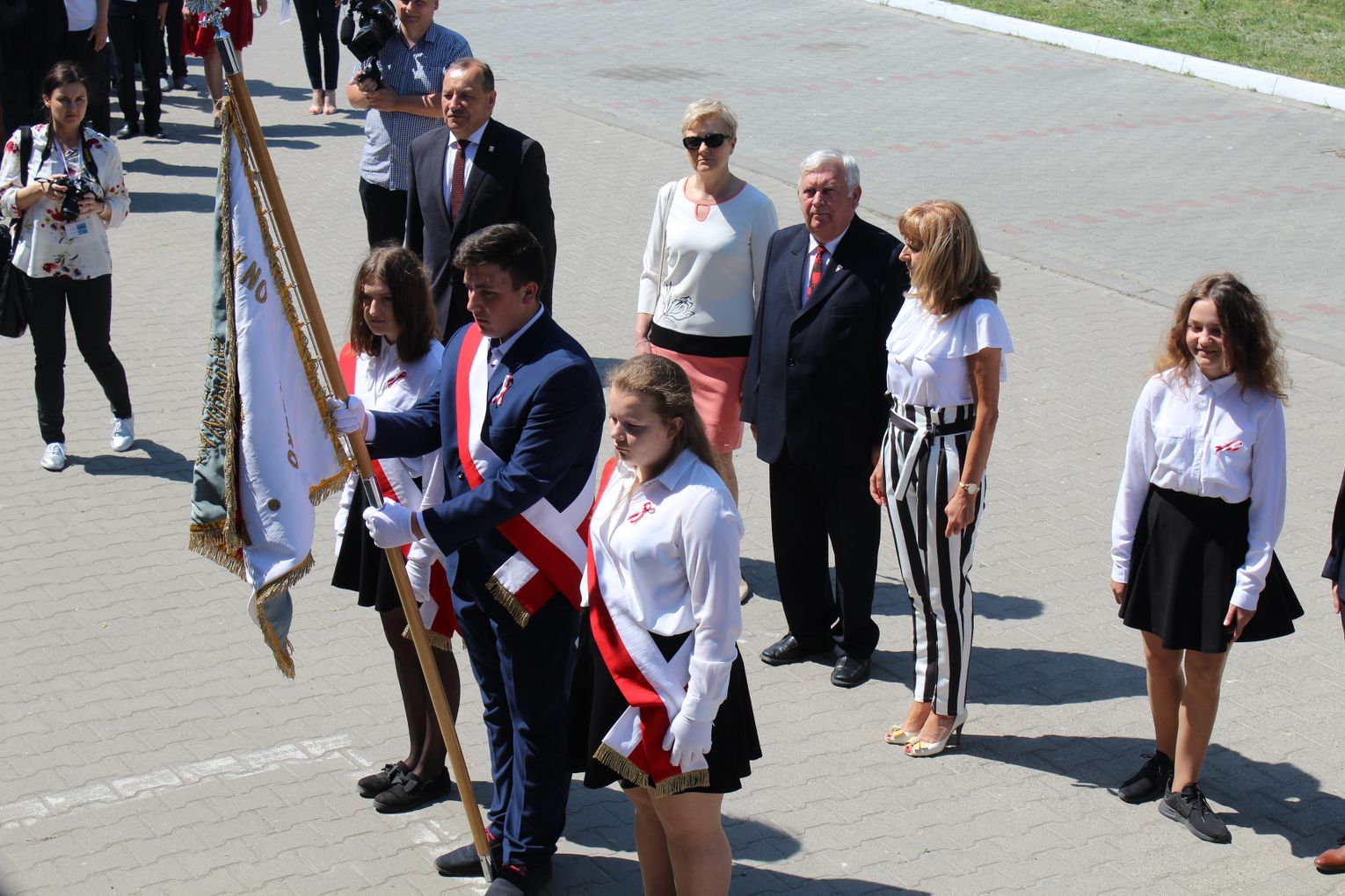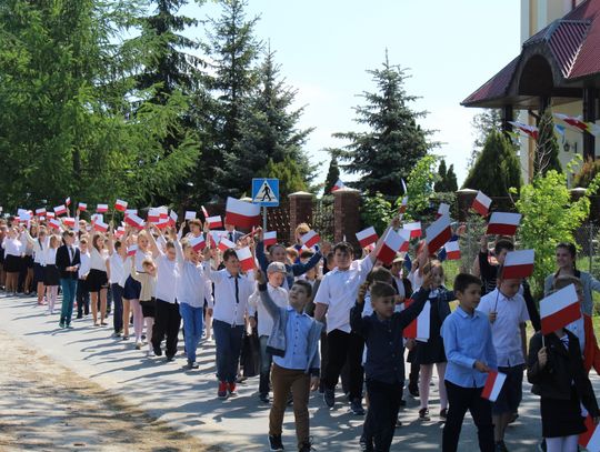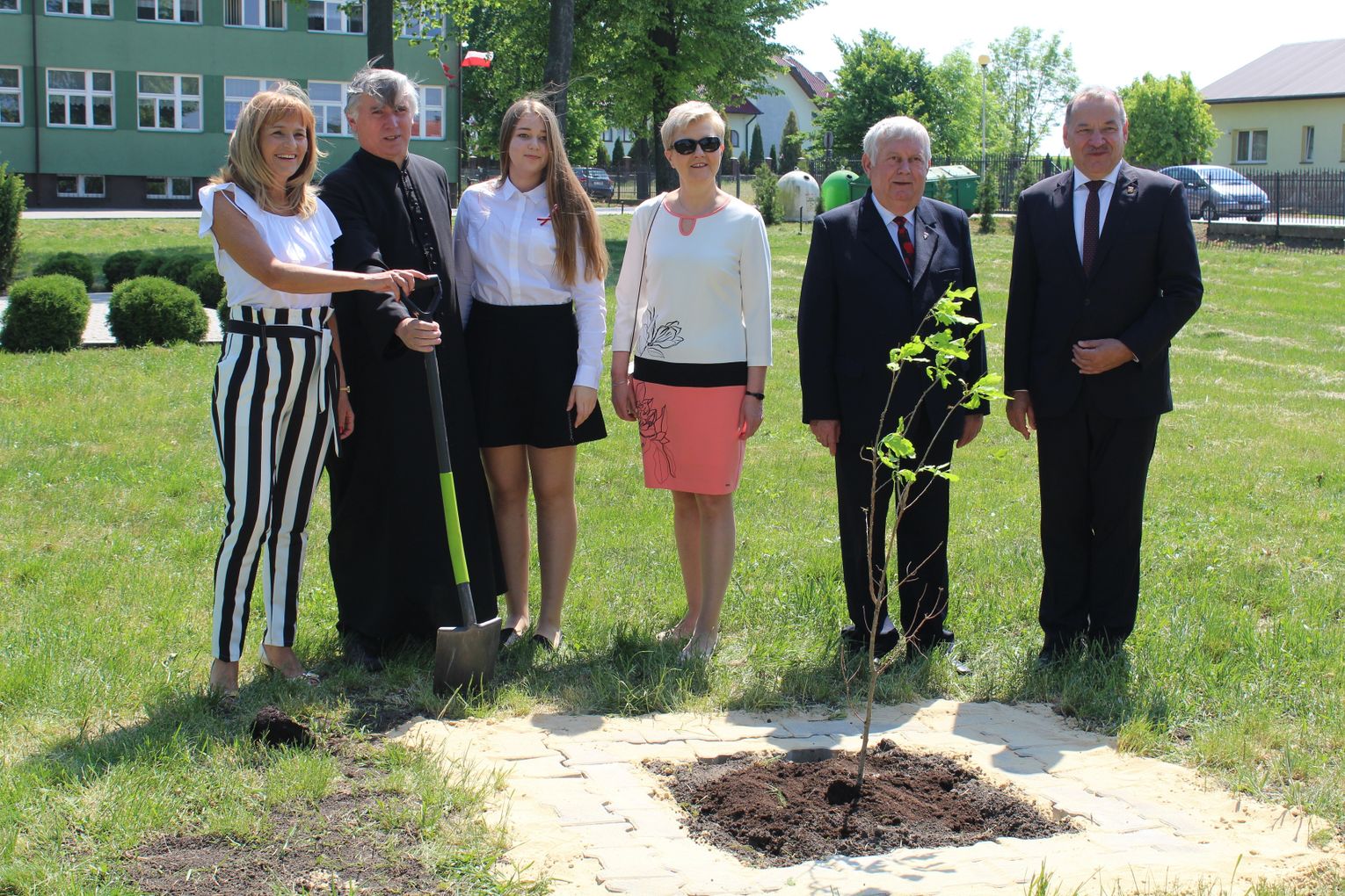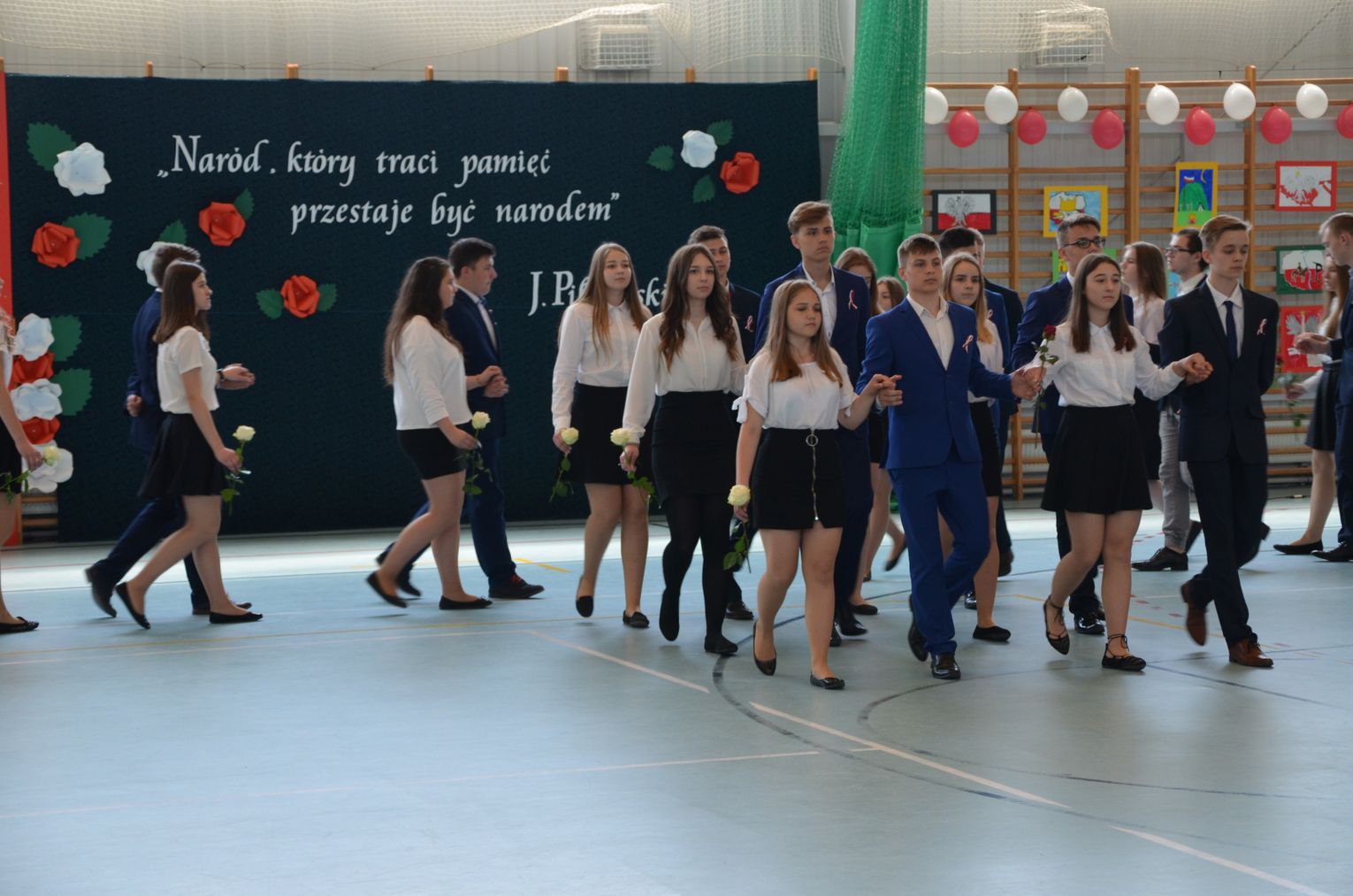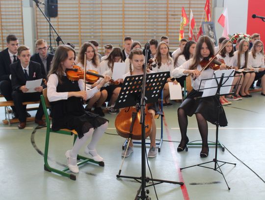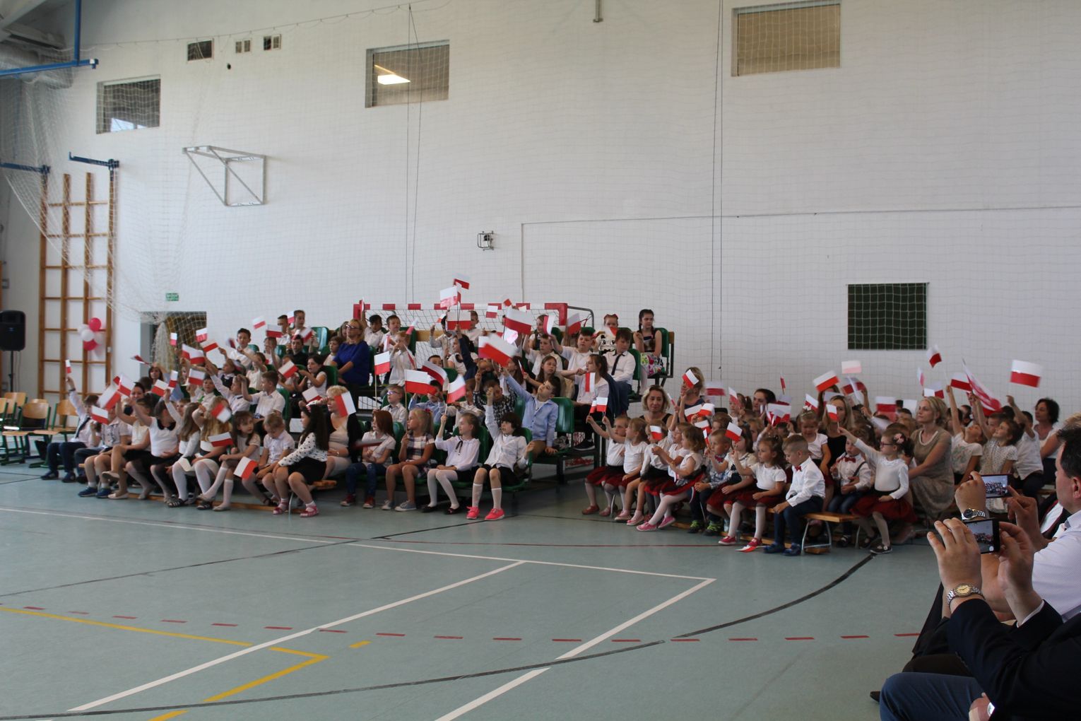Po Mszy św. nastąpił przemarsz „biało-czerwonego” korowodu z kościoła pod pobliską szkołę. Większość uczestników korowodu miało biało-czerwone chorągiewki. Delegacja organizatorów i gości wydarzenia złożyła wiązanki kwiatów pod pamiątkową tablicą Józefa Piłsudskiego – patrona szkoły. Kolejnym punktem uroczystości było posadzenie dębu, symbolizującego pamięć o setnej rocznicy odzyskania niepodległości. Wielu znakomitych uczestników tego „ogrodniczego” aktu po kolei pracowało szpadlem. Potem wszyscy obejrzeli część artystyczną, przygotowaną w szkolnej hali sportowej. Dyrektor szkoły Anna Kowalczyk oficjalnie powitała wszystkich obecnych, po czym zabrzmiały tony poloneza, a na parkiecie pojawiły się tańczące pary gimnazjalistów. Potem były wiersze, monodramy, koncerty i pieśni. Uczniowie szkoły podstawowej i oddziałów gimnazjalnych przygotowali prawie godzinny występ, w którym przypomnieli historię Polski, postać Józefa Piłsudskiego oraz trudną drogę naszego kraju do niepodległości. Przedstawiony program wywołał autentyczny zachwyt przybyłych gości, a słowa podziękowania za jego przygotowanie otrzymali z ust Wójta wszyscy organizatorzy i wykonawcy. Nad przepiękną formą uczniowskich występów czuwały w szczególności nauczycielki Ewa Palonka, Anna Łasocha, Monika Łasocha, Halina Konarzewska, Anna Tomaszewska i Dorota Marczuk.