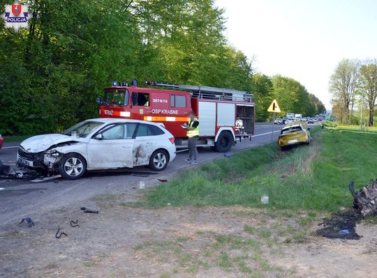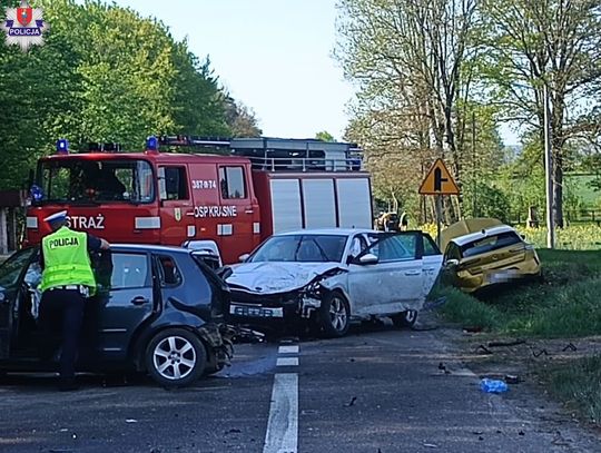 Gm. Stary Zamość: Wypadek z udziałowym 4 osobówek. Dwóch kierowców trafiło do szpitala [ZDJĘCIA]