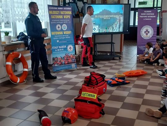 Zbliżające się wakacje to czas radości i wypoczynku, ale także moment, gdy szczególnie ważne staje się bezpieczeństwo dzieci i młodzieży. Policjanci wspólnie z ratownikiem WOPR, spotkali się z uczniami szkół podstawowych, by przypomnieć im najważniejsze zasady bezpiecznego wypoczynku nad wodą i na drodze.