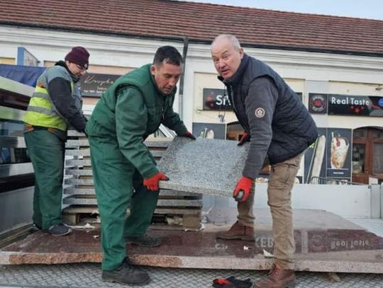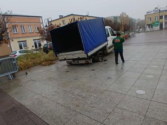 Ciężarówki MPGK zapadły się w fontannie na rynku [ZDJĘCIA]
