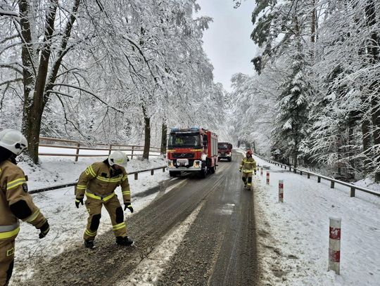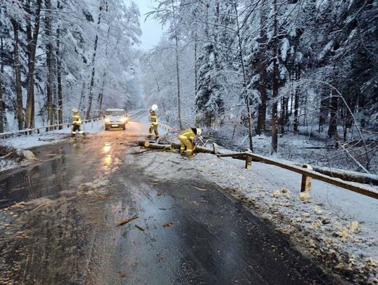 Mokry, ciężki śnieg, który zaczął padać w piątek 21 listopada, sparaliżował Zamojszczyznę i doprowadził do dziesiątek interwencji w kilku powiatach regionu. Zgłoszenia napływają bez przerwy, a strażacy – zarówno z jednostek PSP, jak i OSP – pracują w trybie ciągłym, usuwając drzewa, które łamią się pod naporem śniegu i tarasują drogi. Według informacji Komendy Miejskiej PSP w Zamościu tylko 22 i 23 listopada do godziny 9 strażacy interweniowali 46 razy.