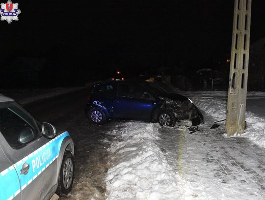 20-latka kierując Citroenem w Starym Zamościu nie dostosowała prędkości do trudnych zimowych warunków drogowych, wpadła w poślizg i uderzyła w słup energetyczny.