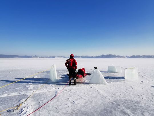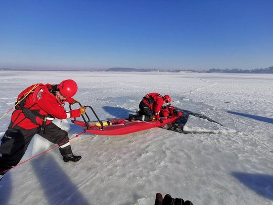 Na zalewie w Nieliszu strażacy ćwiczą akcję ratunkową na lodzie [ZDJECIA]