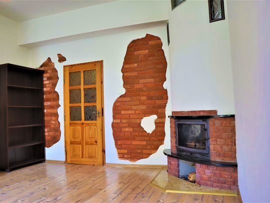 Ogrzewanie – kominkowe z rozprowadzeniem ciepłego powietrza do wszystkich pomieszczeń.