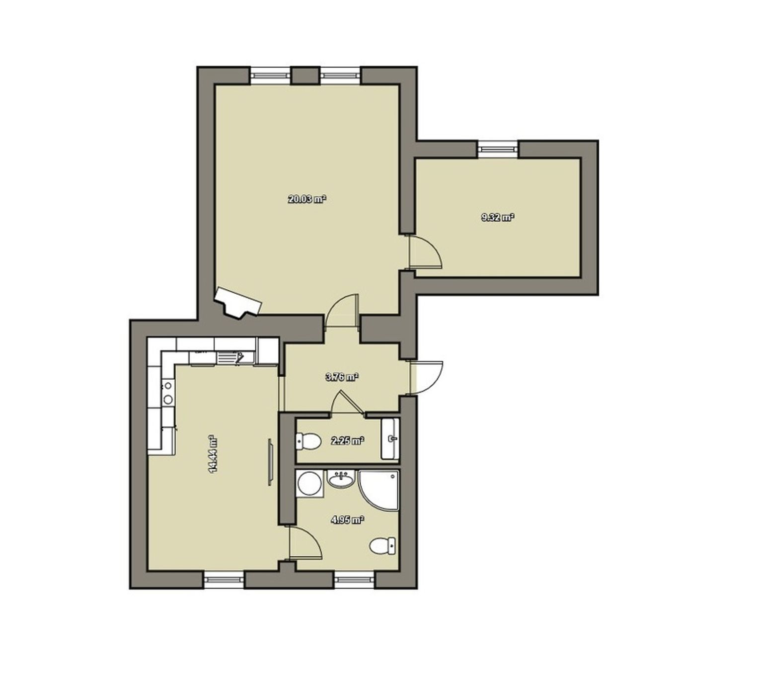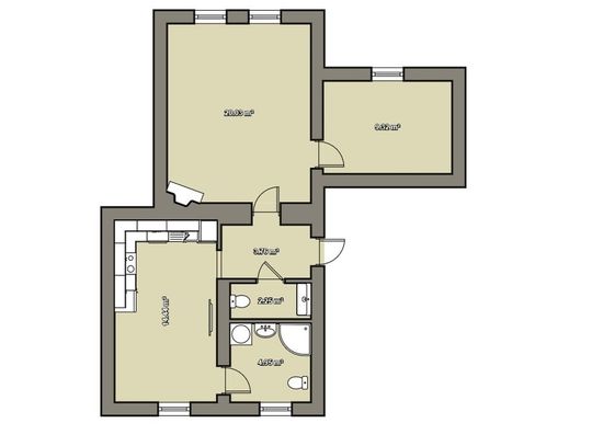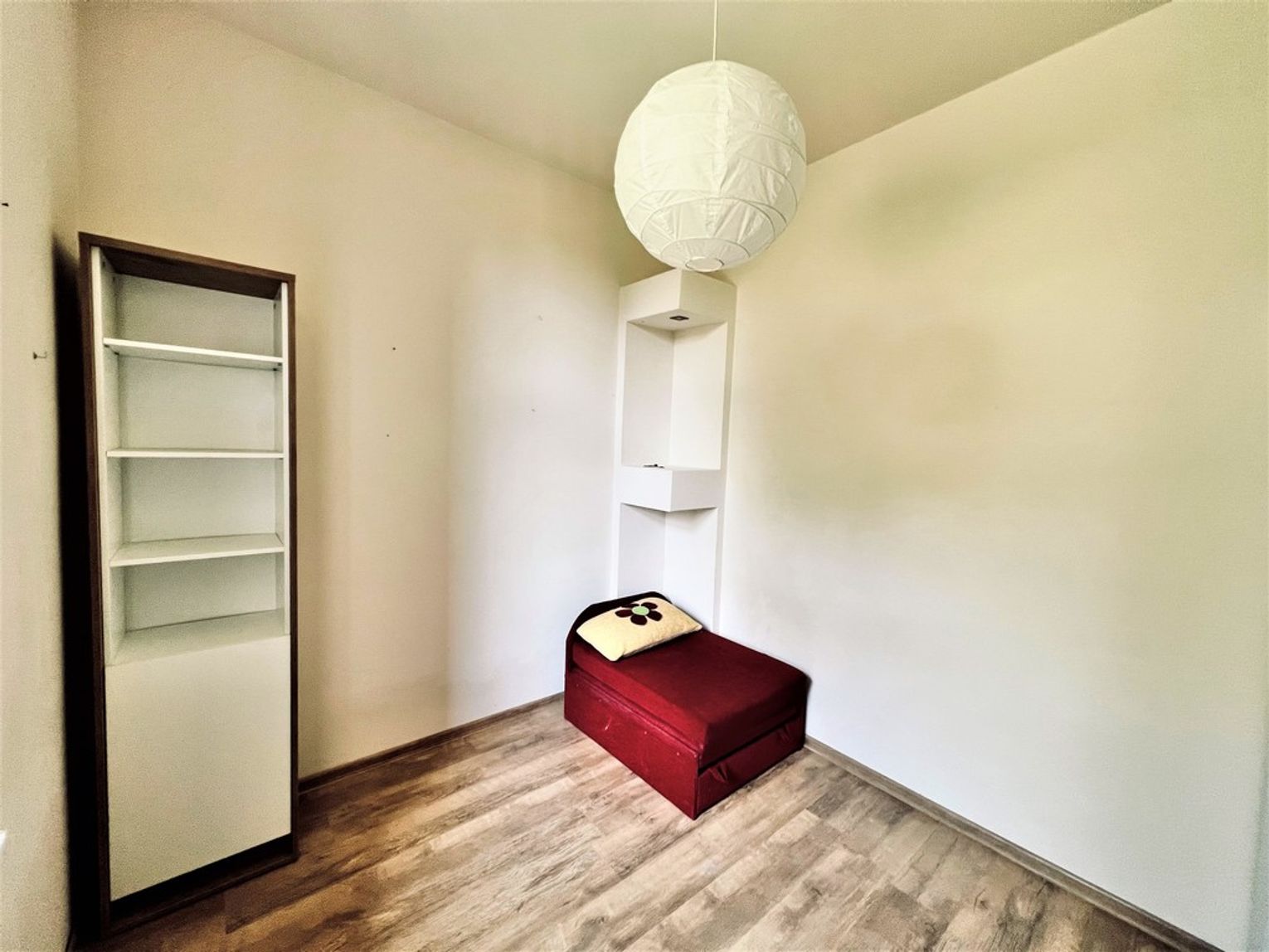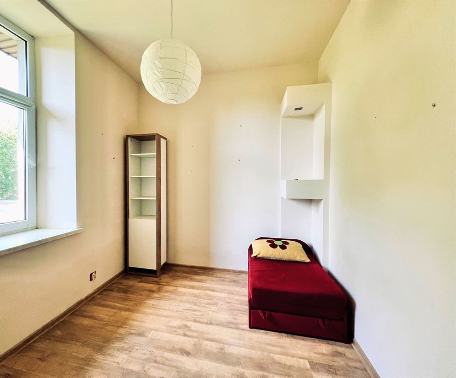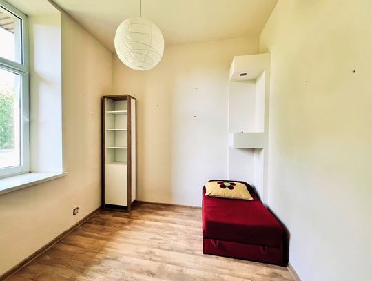 Duży pokój z kominkiem o pow. 20 m2 i dwoma oknami od strony południowej. Mniejszy pokój (9,3 m2) z dużym południowym oknem i dużą szafą-garderobą w zabudowie.