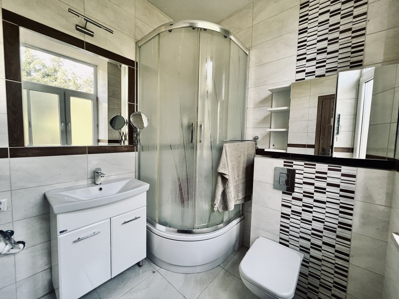 Mieszkanie składa się z dwóch pokoi,dwie łazienki, przedpokoju oraz kuchni z jadalnią.