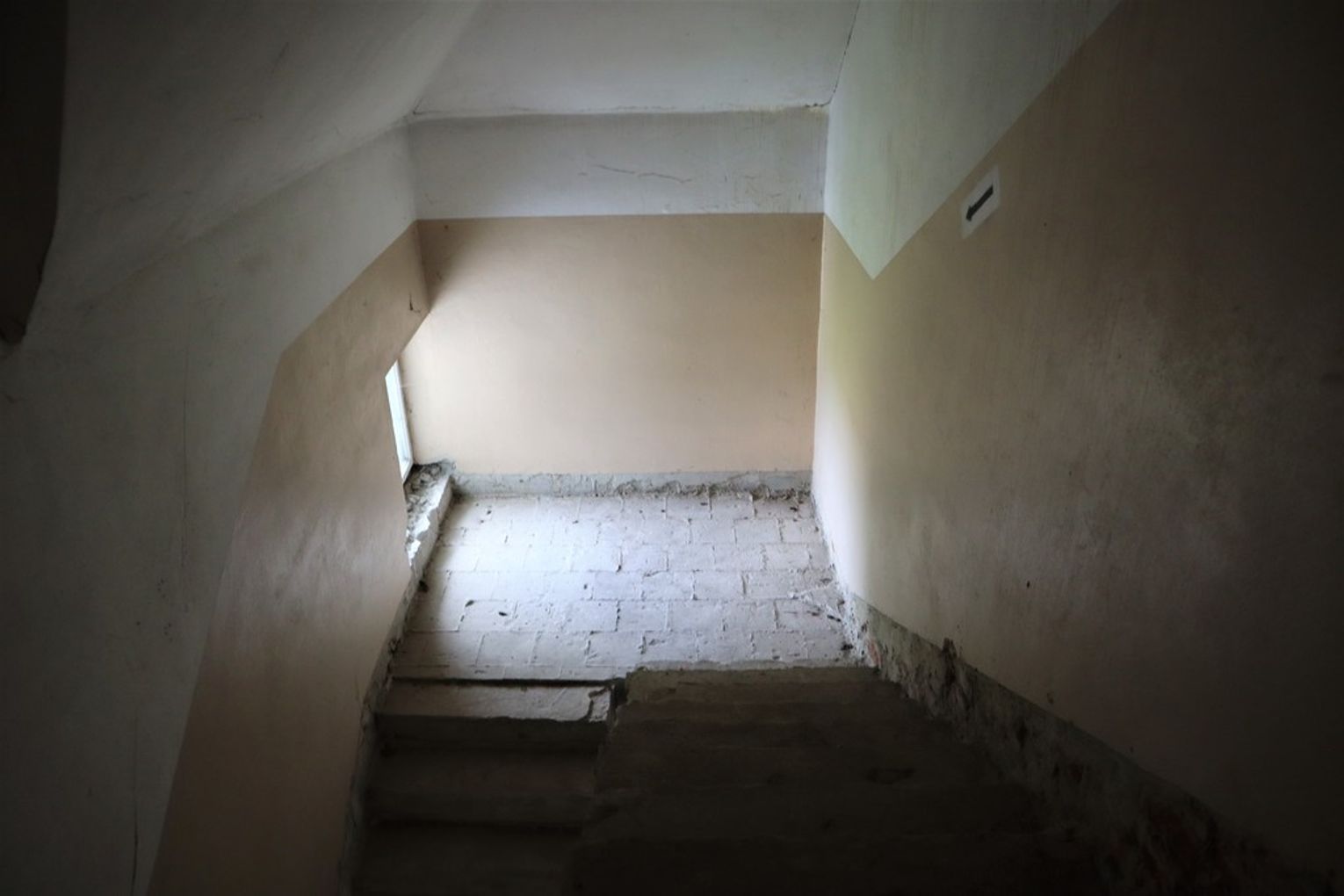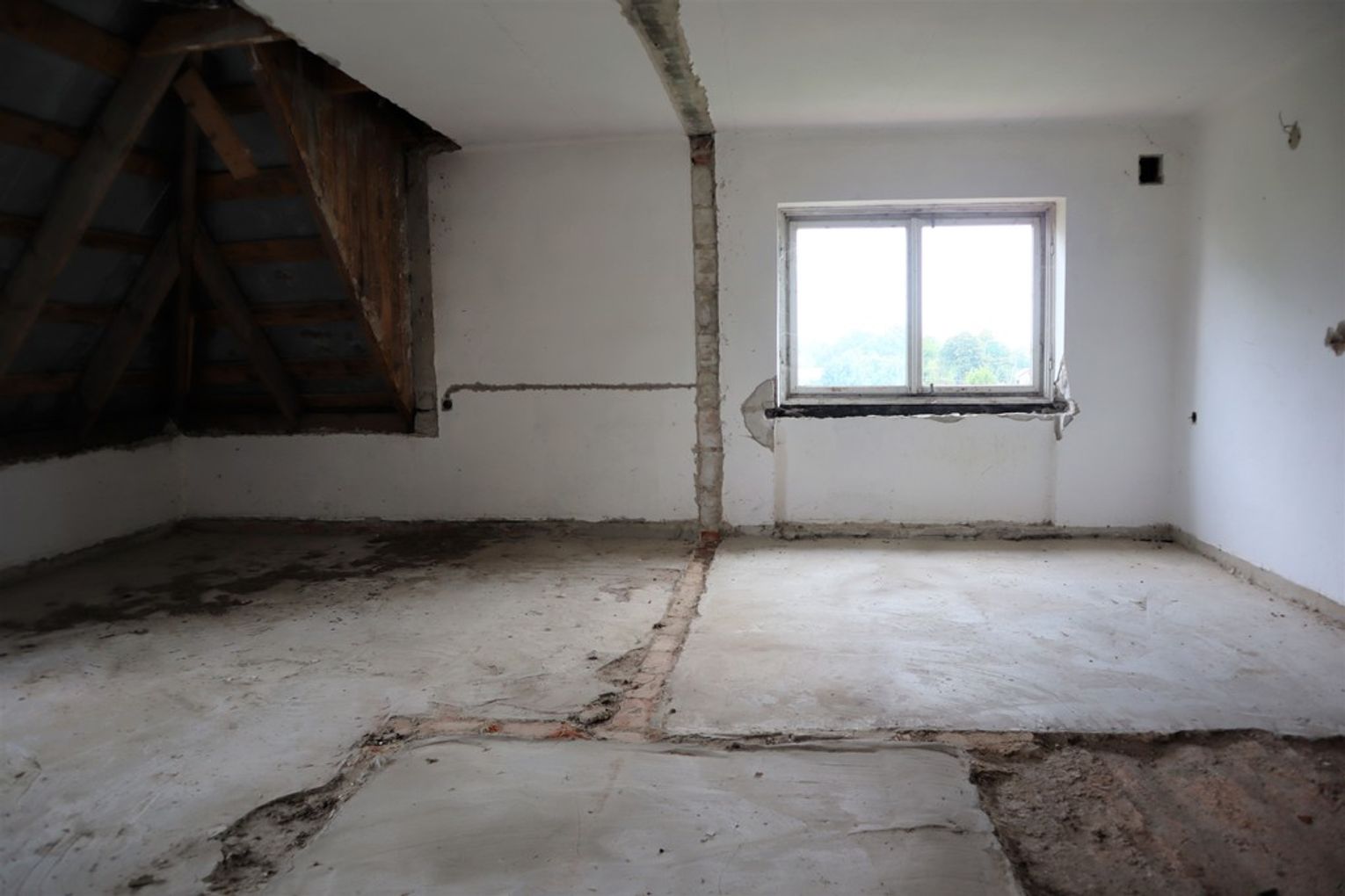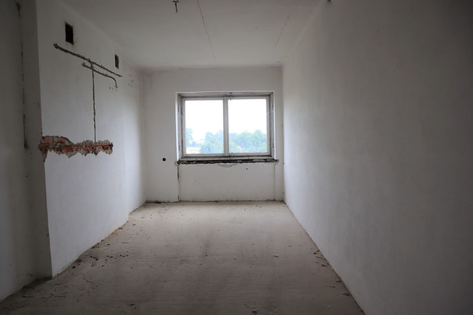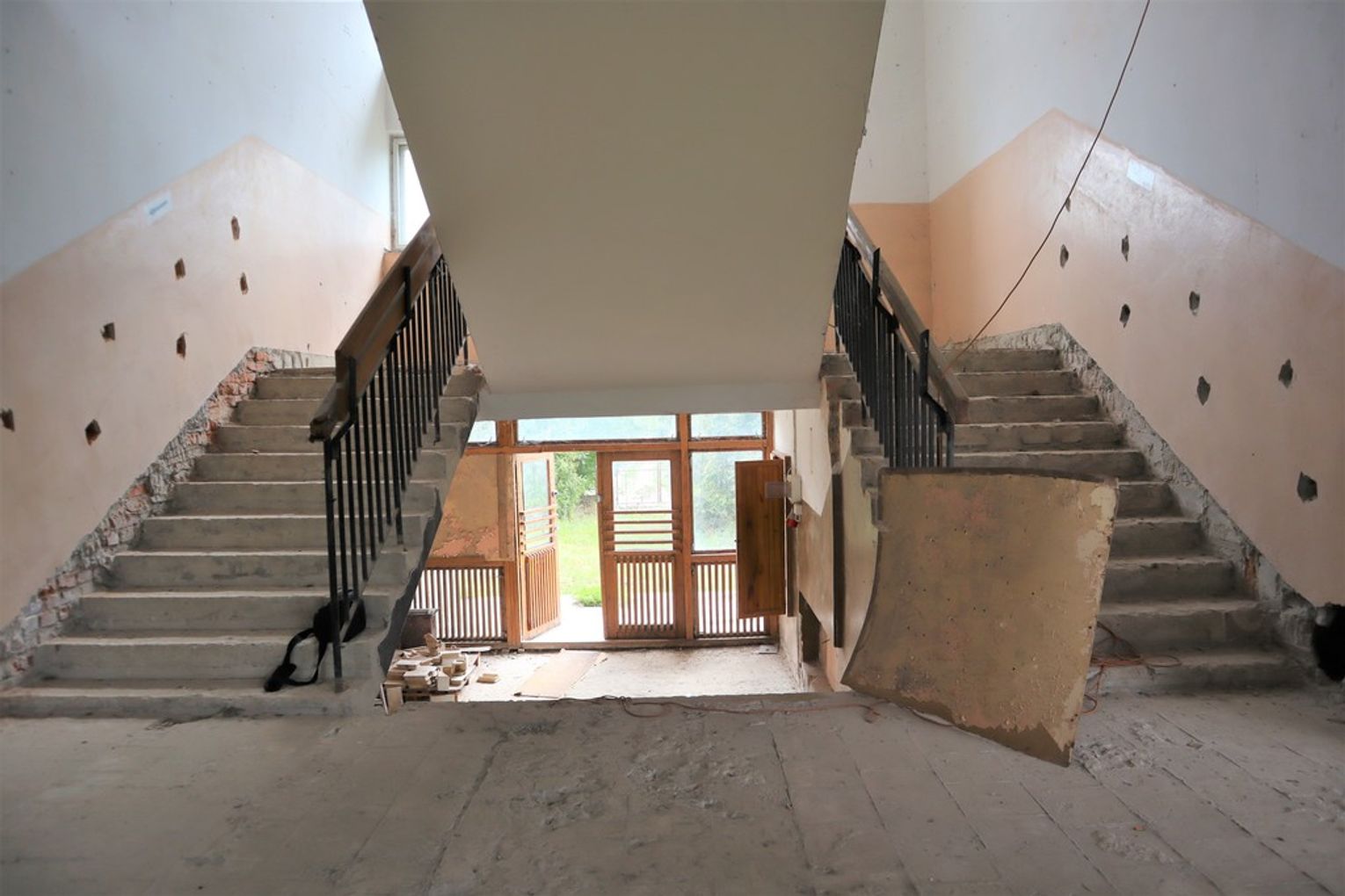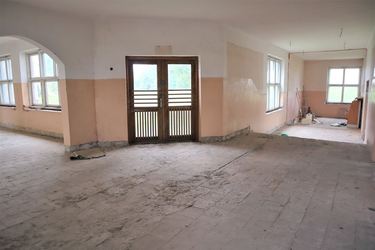 Obiekt byłej Szkoły Podstawowej, w której zostały przerwane prace adaptacyjne, przeprowadzane na potrzeby przebudowy budynku.