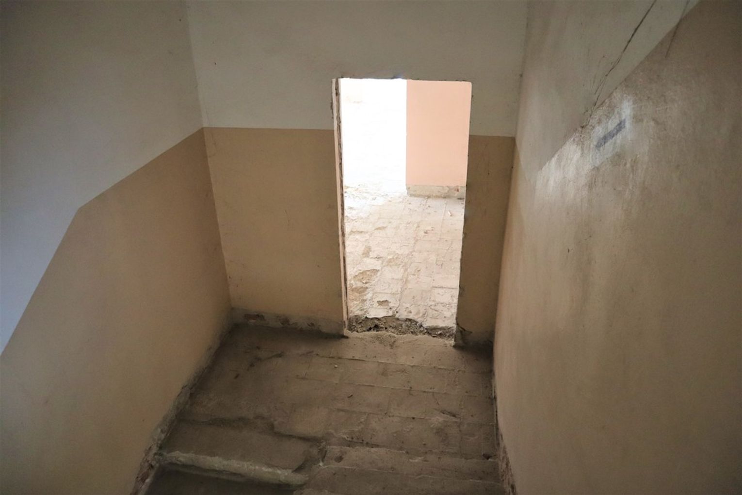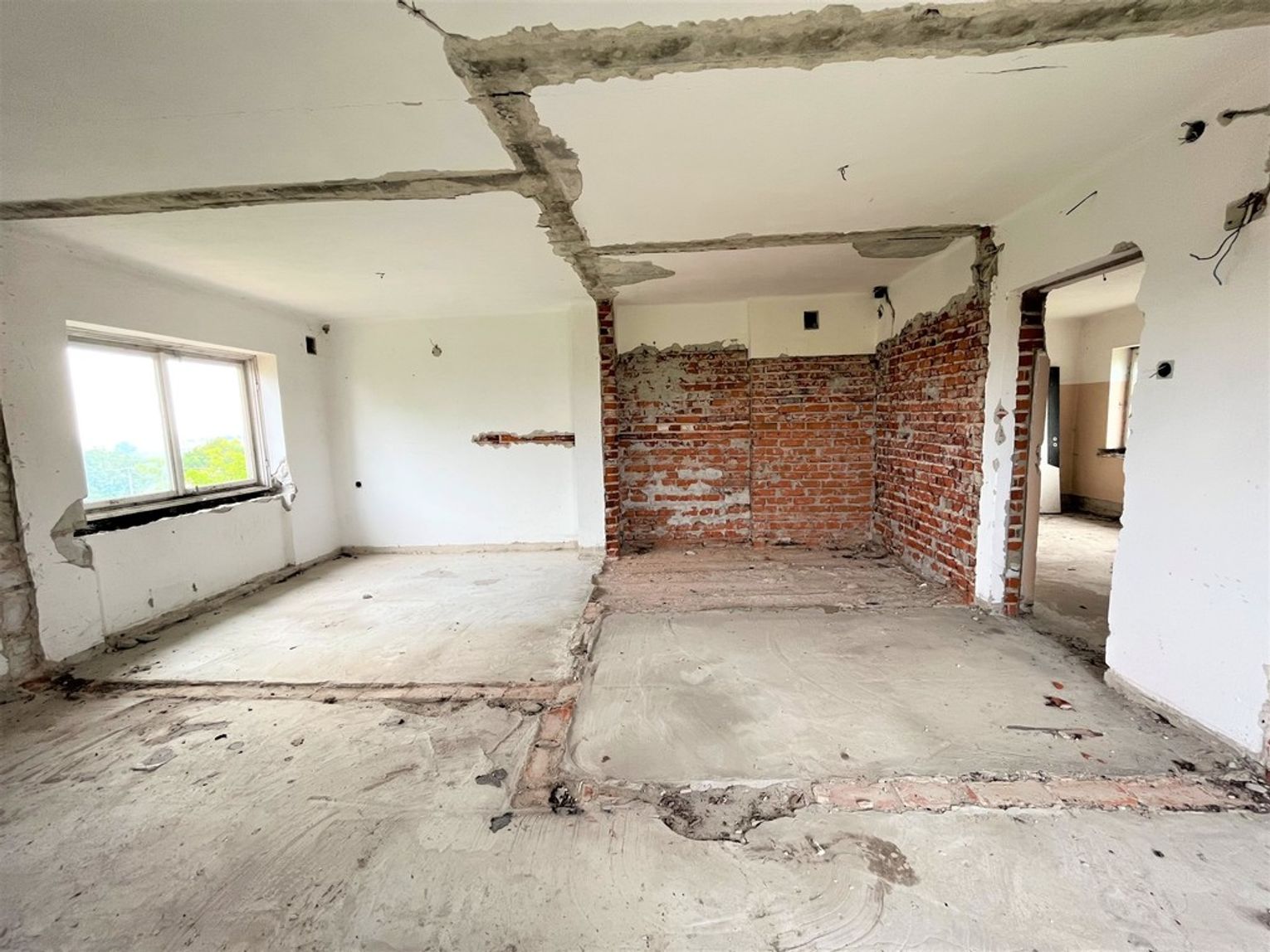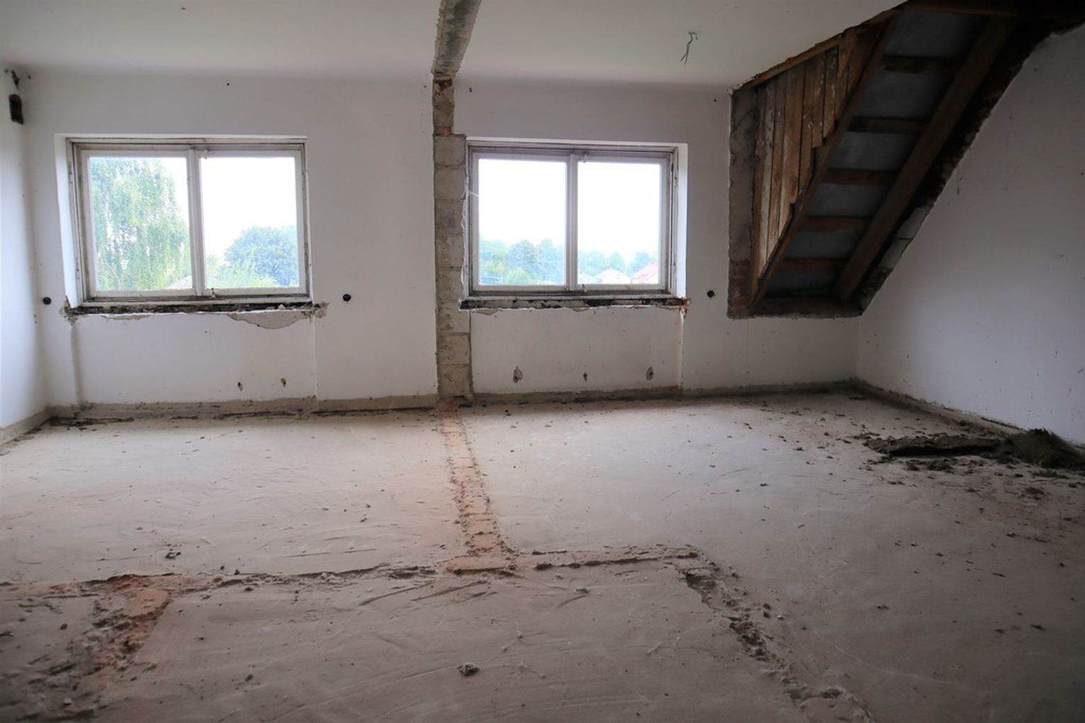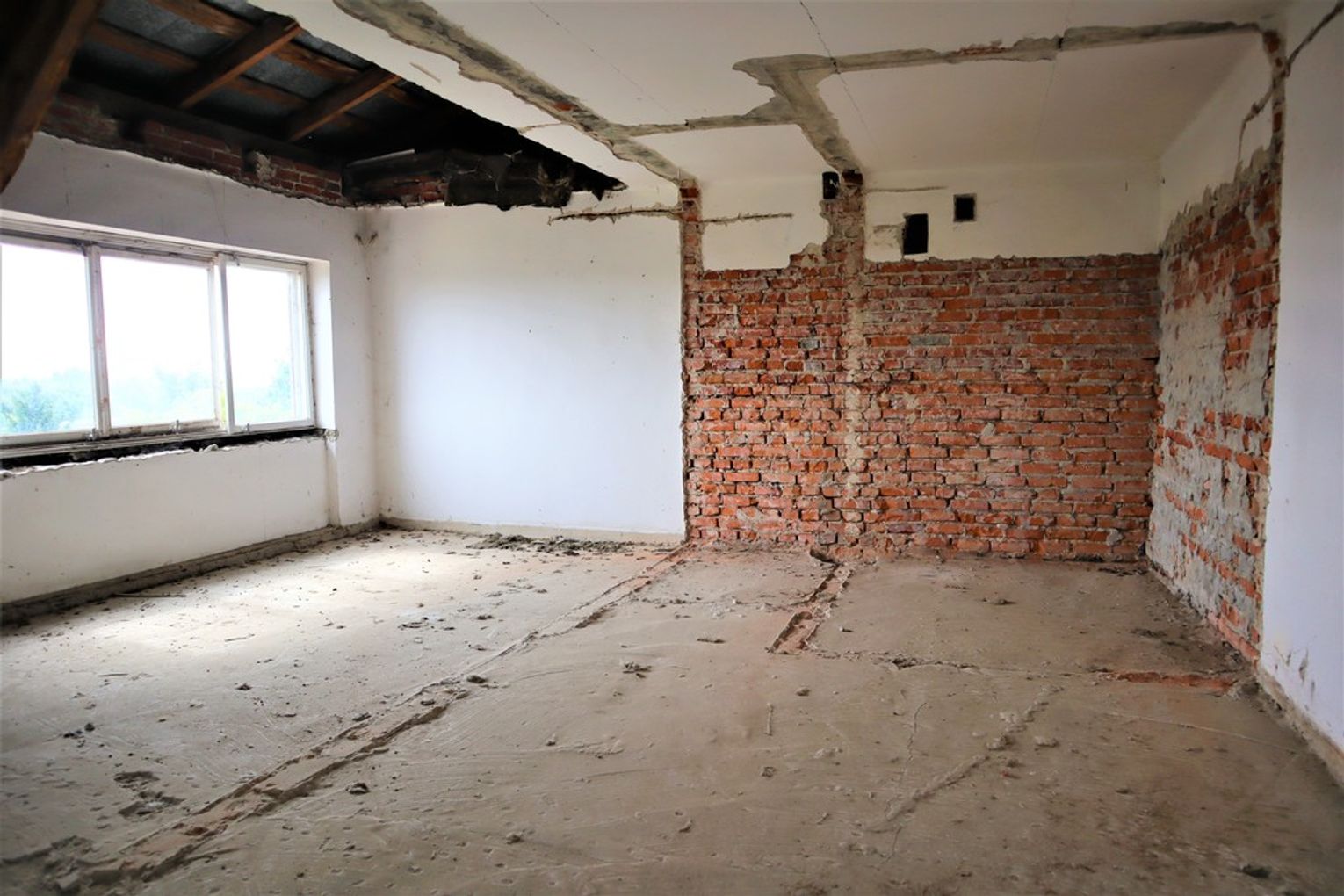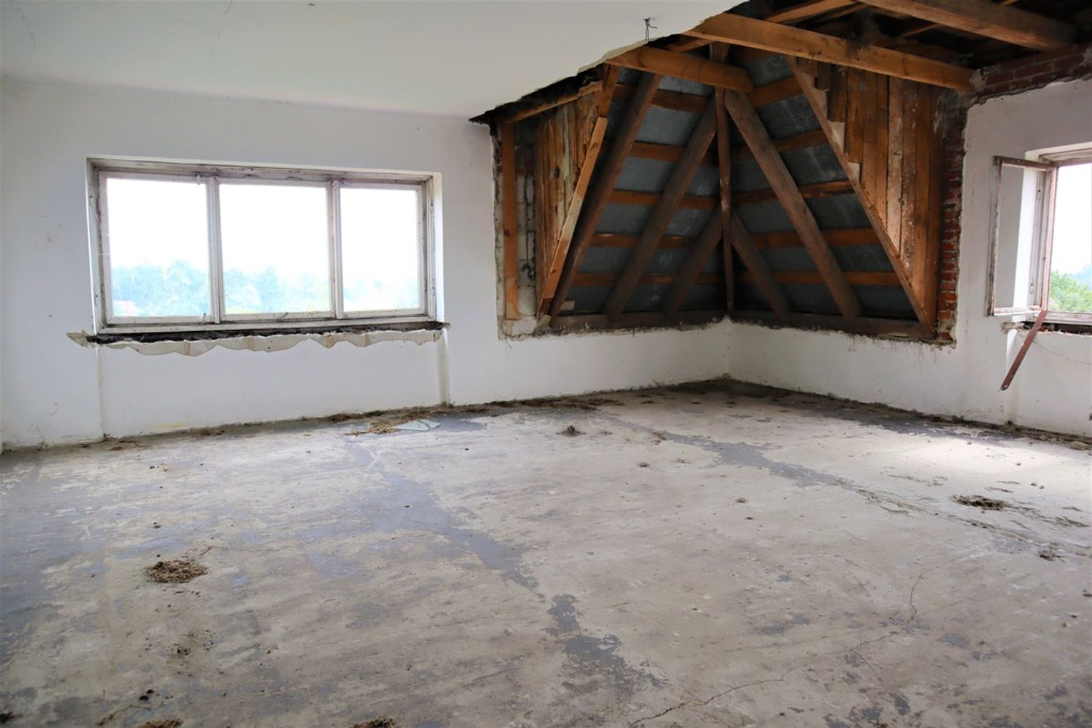 Obiekt byłej Szkoły Podstawowej, w której zostały przerwane prace adaptacyjne, przeprowadzane na potrzeby przebudowy budynku.