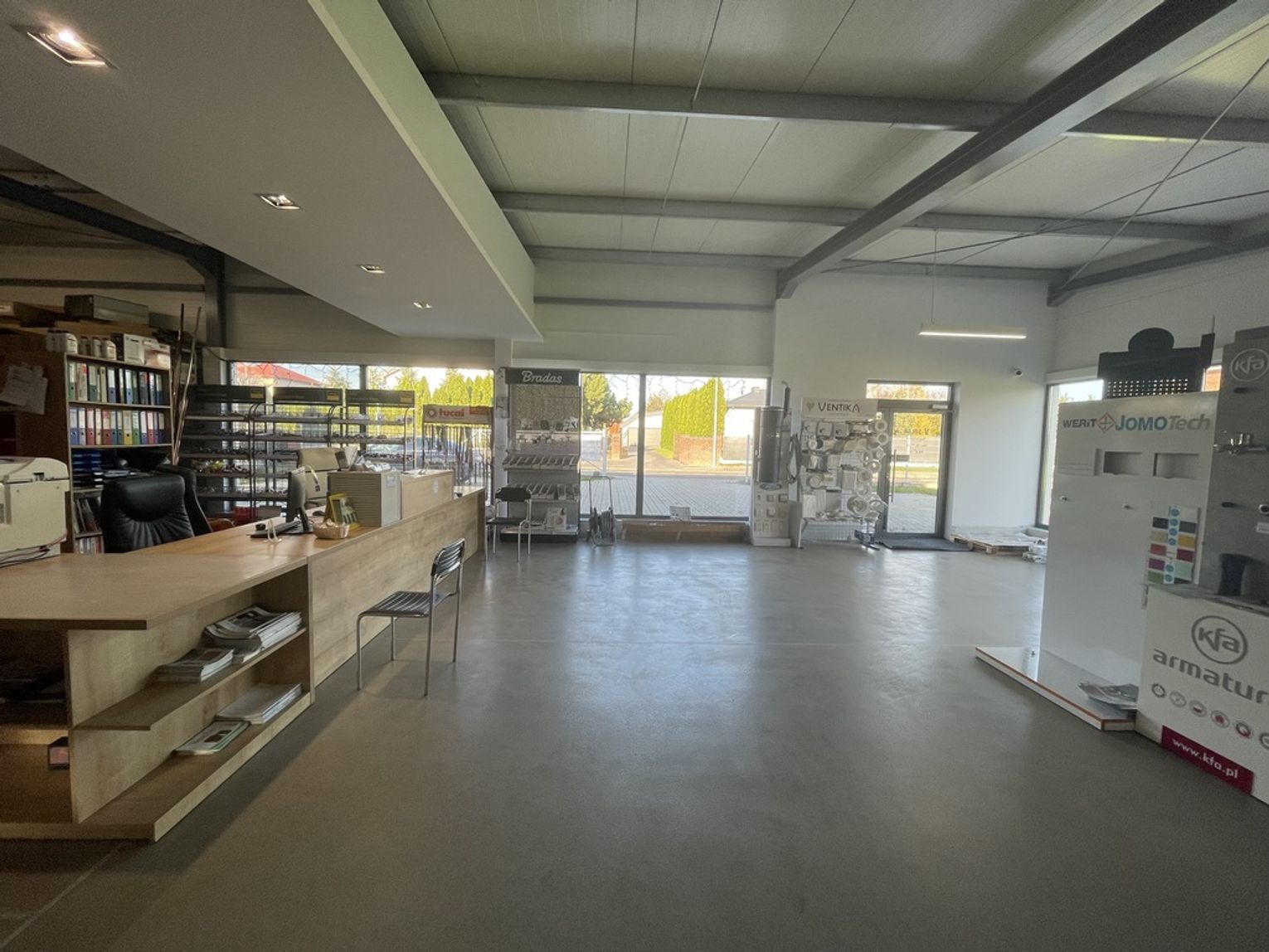 Rozkład lokalu: przestronna hala sprzedażowa wraz z zapleczem socjalnym
