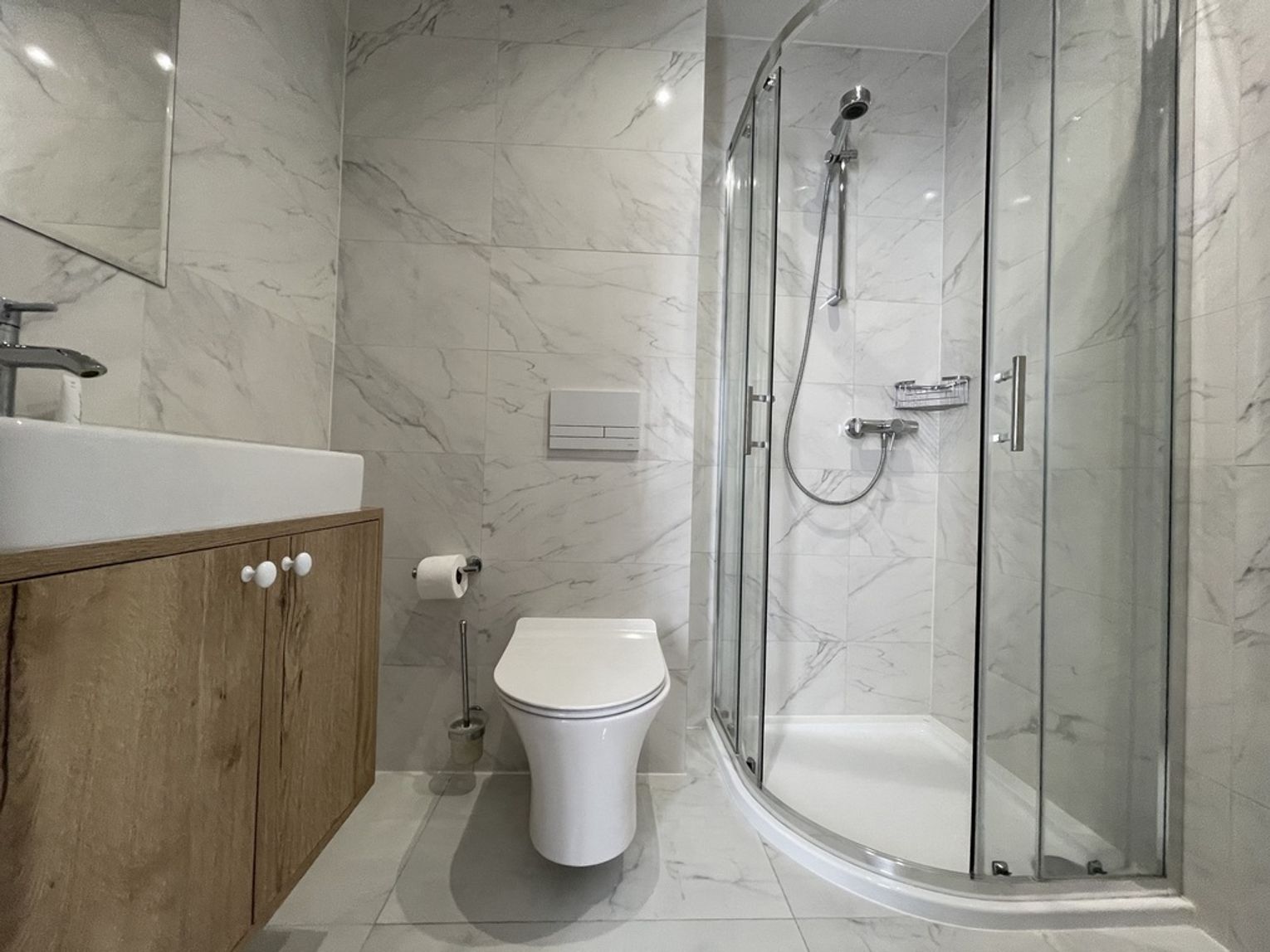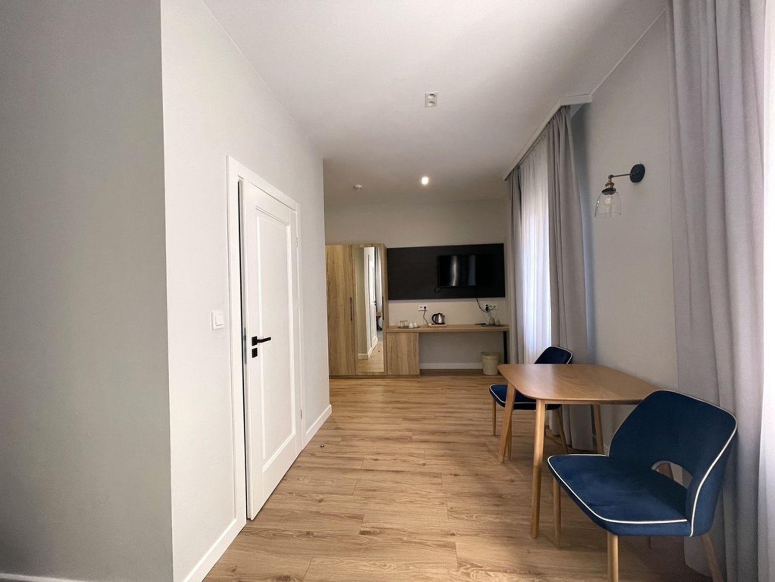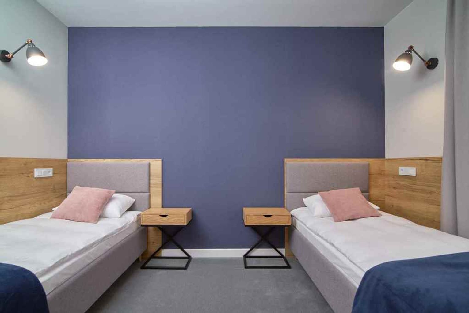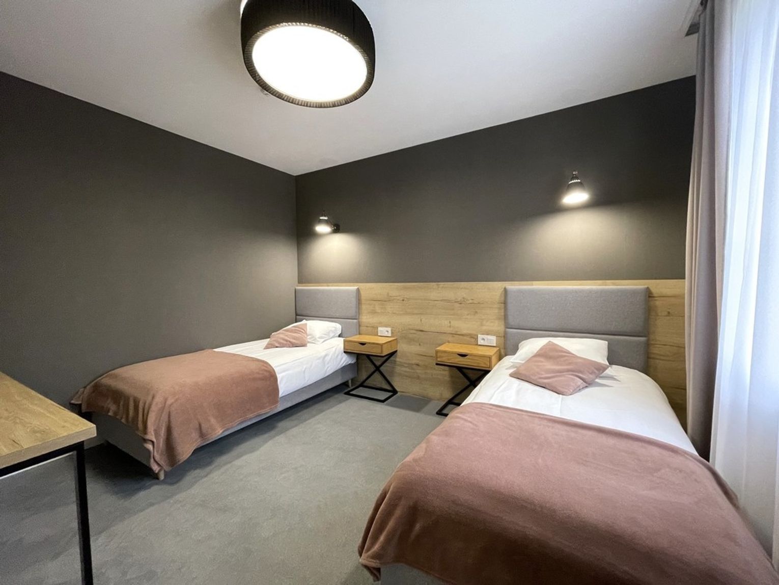 Wysoki parter: dwa mikroapartamenty dwuosobowe o powierzchni około 26,5 m2. Każdy z prywatną łazienką.