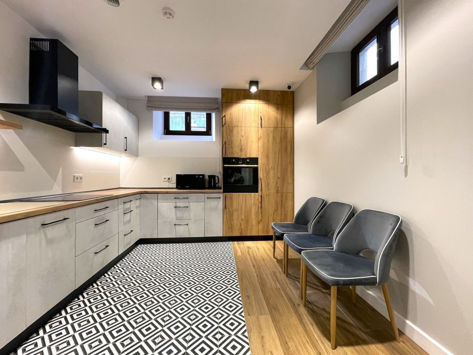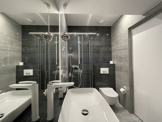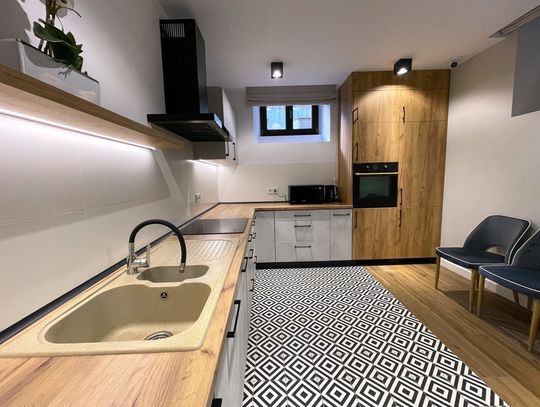Funkcjonalne wnętrza zostały zaprojektowane przez architekta i wykończone przy użyciu wysokiej jakości materiałów. Projekt zakładał zachowanie pozostałości historycznych, tworząc jednocześnie komfortową przestrzeń.