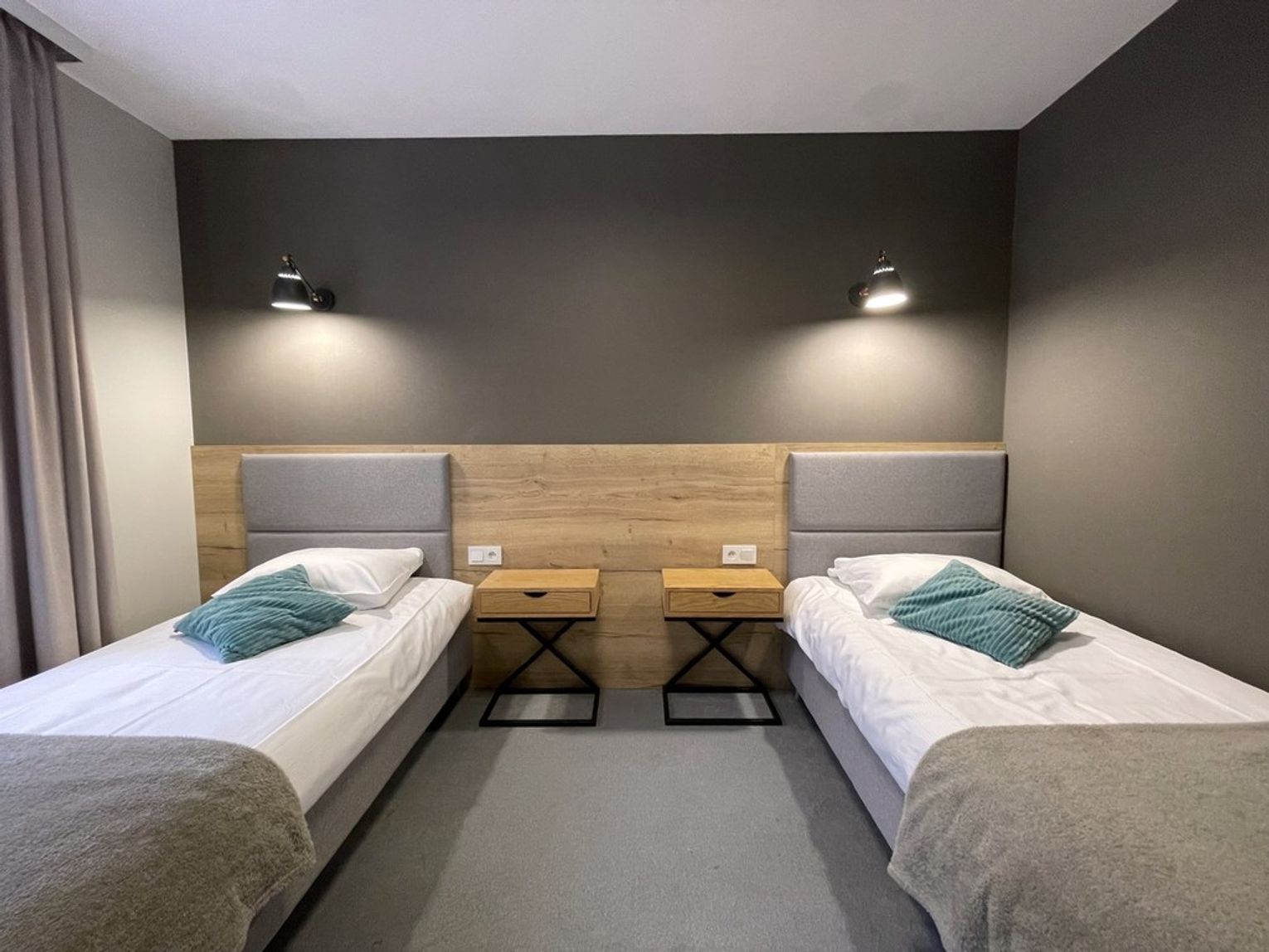 1 Piętro: dwa apartamenty trzyosobowe o powierzchni około 37 m2. Każdy z prywatną łazienką.