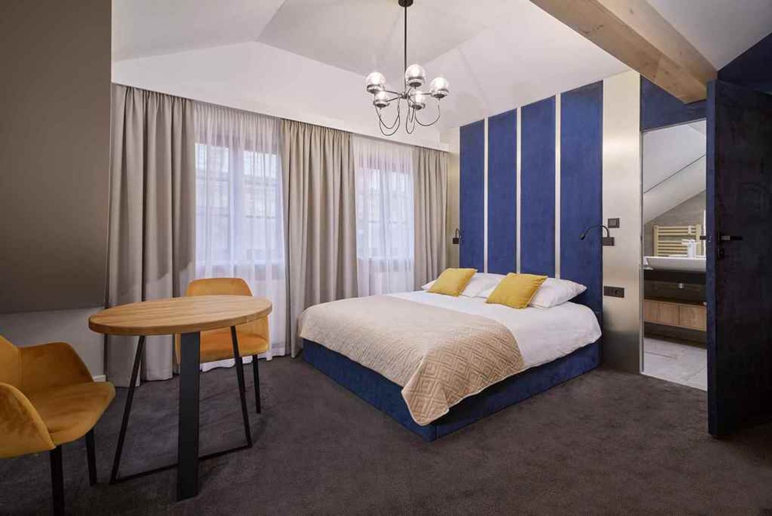 Poddasze: dwa apartamenty Deluxe o powierzchni około 21m2. Każdy z dużą prywatną łazienką. Pomieszczenia klimatyzowane.