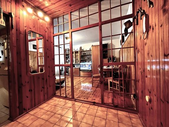 * Rustykalne detale wykończeniowe z naturalnego drewna - podłogi i boazerie sosnowe.