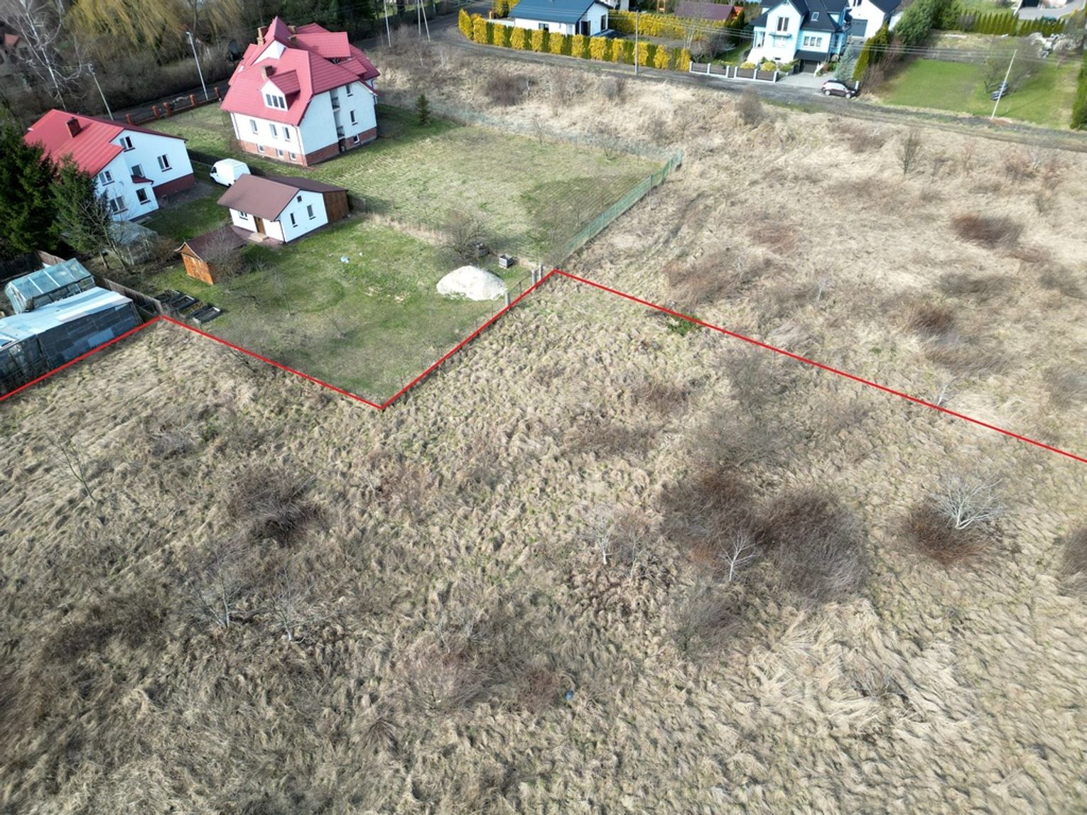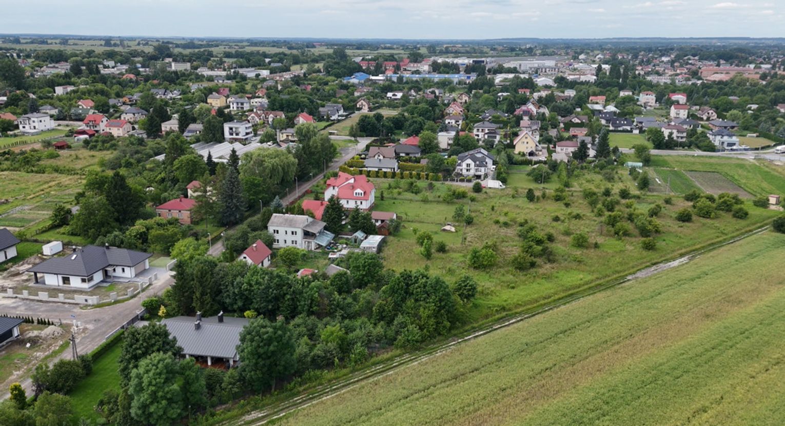 - Bliskość działki stanowią tereny zielone i domki jednorodzinne, co zapewnia przyjemne otoczenie, poczucie prywatności oraz bezpieczeństwa.