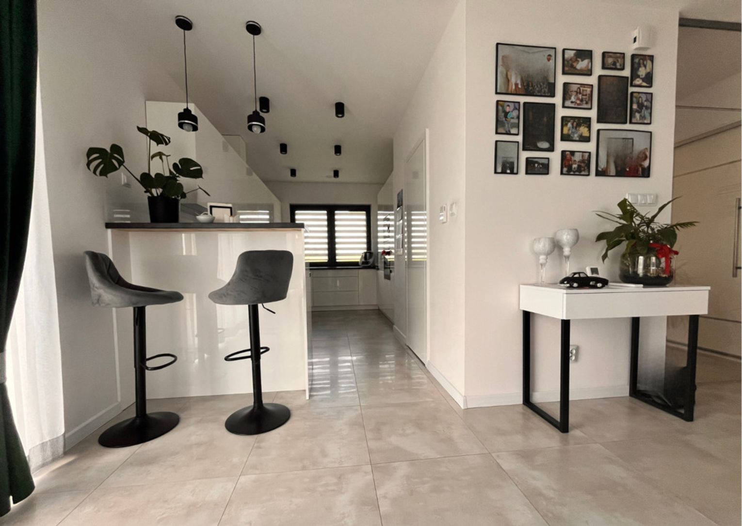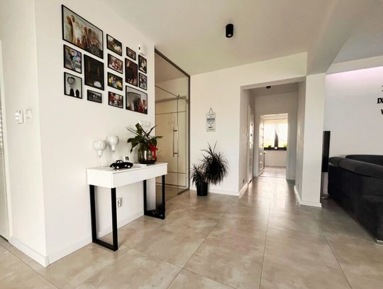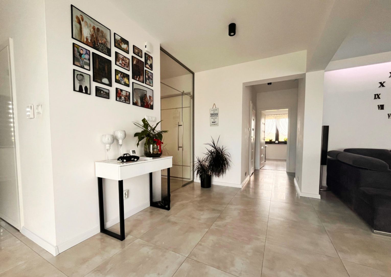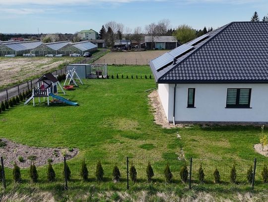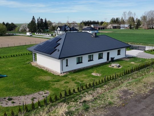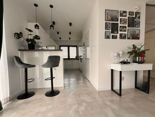 Nieruchomość jest w całości zaprojektowana w sposób funkcjonalny, z zastosowaniem nowoczesnych i praktycznych rozwiązań. Każde miejsce w domu jest wykorzystane i urządzone w sposób przemyślany. Reprezentacyjne przestrzenie - salon, kuchnia oraz łazienki zaprojektowane są w funkcjonalny sposób, wykończone z użyciem wysokiej jakości materiałów, w neutralnych kolorach, nowoczesnym stylu wpasowującym się w obecne trendy Udogodnienia takie jak klimatyzacja, ogrzewanie gazowe podnoszą komfort mieszkania a instalacja fotowoltaiczna obniża koszty eksploatacyjne. Otoczenie domu jest zadbane, podjazd do garażu i miejsca parkingowe zewnętrzne utwardzono, założono trawnik, rabaty kwiatowe i plac zabaw. Granice działki obsadzono tujami. Dom nie wymaga żadnych nakładów finansowych.