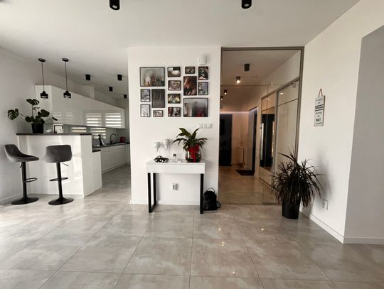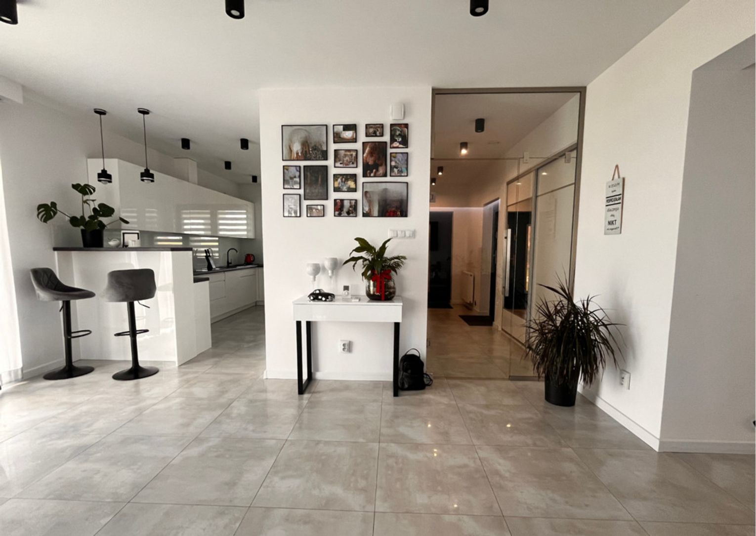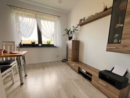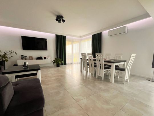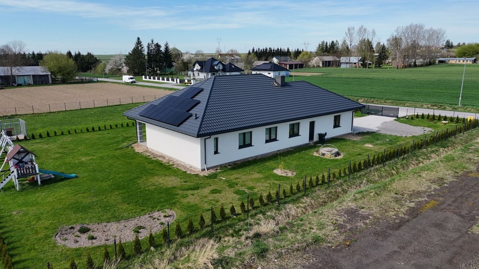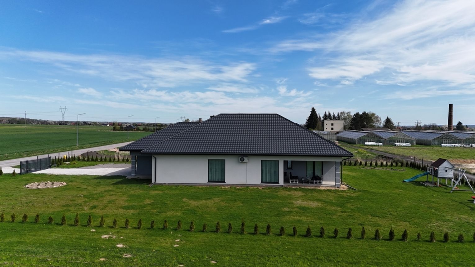Nieruchomość jest w całości zaprojektowana w sposób funkcjonalny, z zastosowaniem nowoczesnych i praktycznych rozwiązań. Każde miejsce w domu jest wykorzystane i urządzone w sposób przemyślany. Reprezentacyjne przestrzenie - salon, kuchnia oraz łazienki zaprojektowane są w funkcjonalny sposób, wykończone z użyciem wysokiej jakości materiałów, w neutralnych kolorach, nowoczesnym stylu wpasowującym się w obecne trendy Udogodnienia takie jak klimatyzacja, ogrzewanie gazowe podnoszą komfort mieszkania a instalacja fotowoltaiczna obniża koszty eksploatacyjne. Otoczenie domu jest zadbane, podjazd do garażu i miejsca parkingowe zewnętrzne utwardzono, założono trawnik, rabaty kwiatowe i plac zabaw. Granice działki obsadzono tujami. Dom nie wymaga żadnych nakładów finansowych.