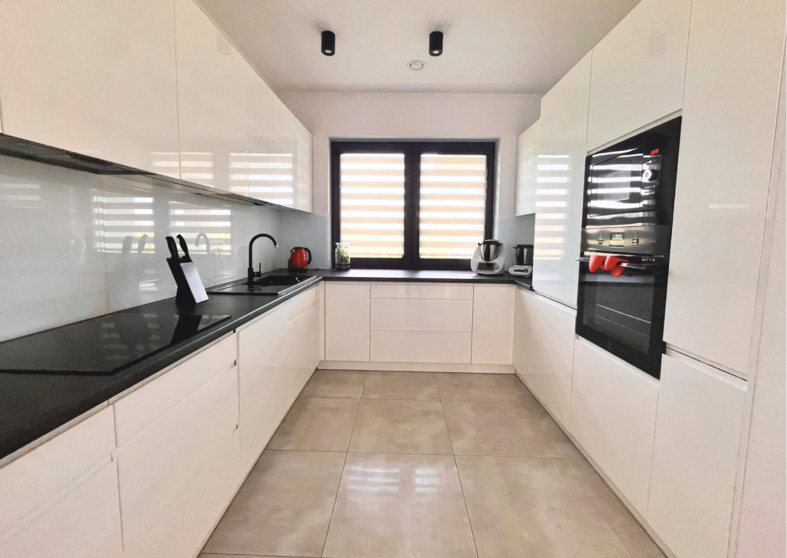 • Kuchnia wyposażona w zabudowę na wymiar w wysokim standardzie wykonania z ukrytą spiżarnią.