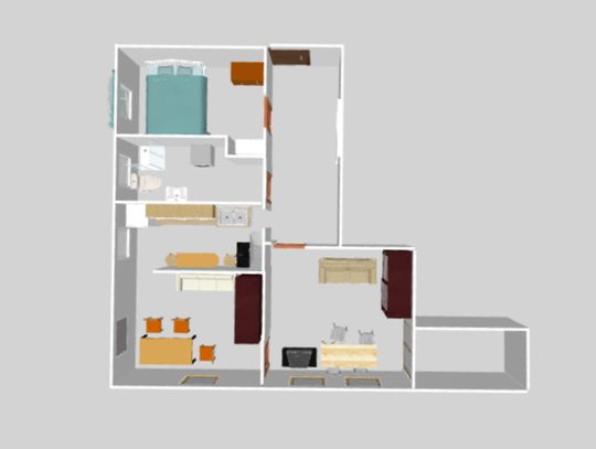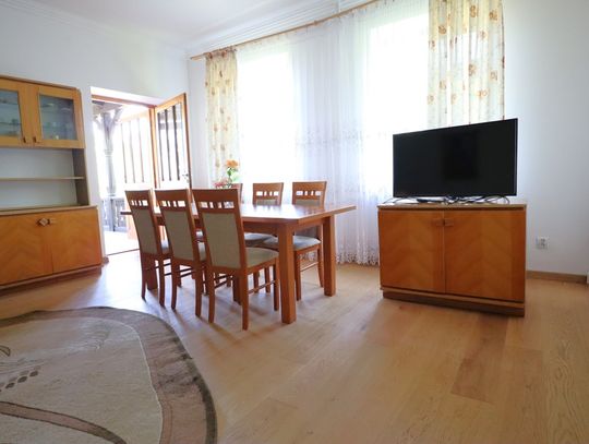 Nieruchomość jest w pełni umeblowana i wyposażona, gotowa do natychmiastowego zamieszkania. Wyposażenie obejmuje m.in. meble, sprzęty kuchenne, wyposażenie łazienki.
