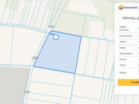 Działka o pow. ok 25 600 m2, o kształcie trapezu