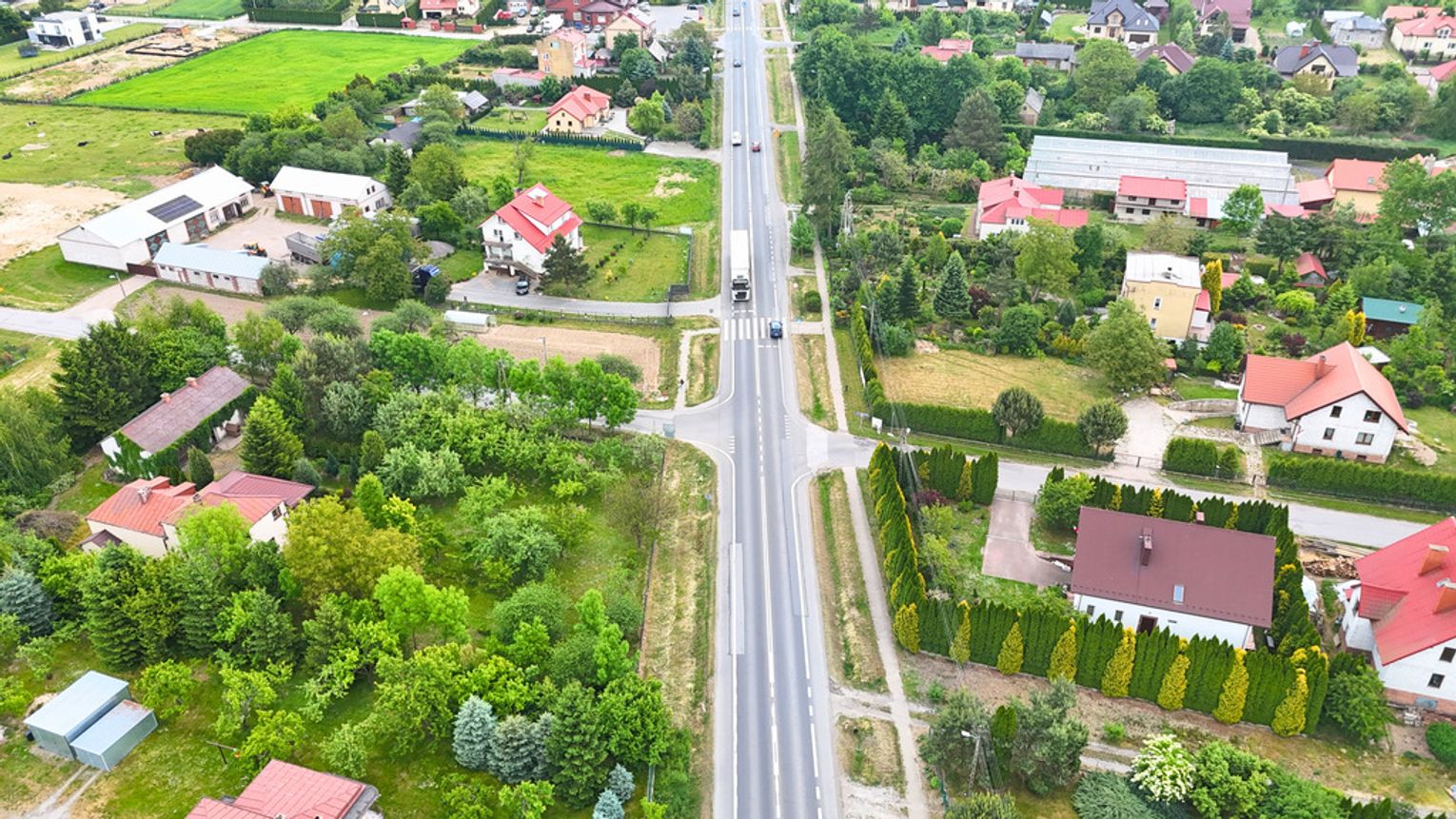 Droga asfaltowa prowadząca bezpośrednio do działki