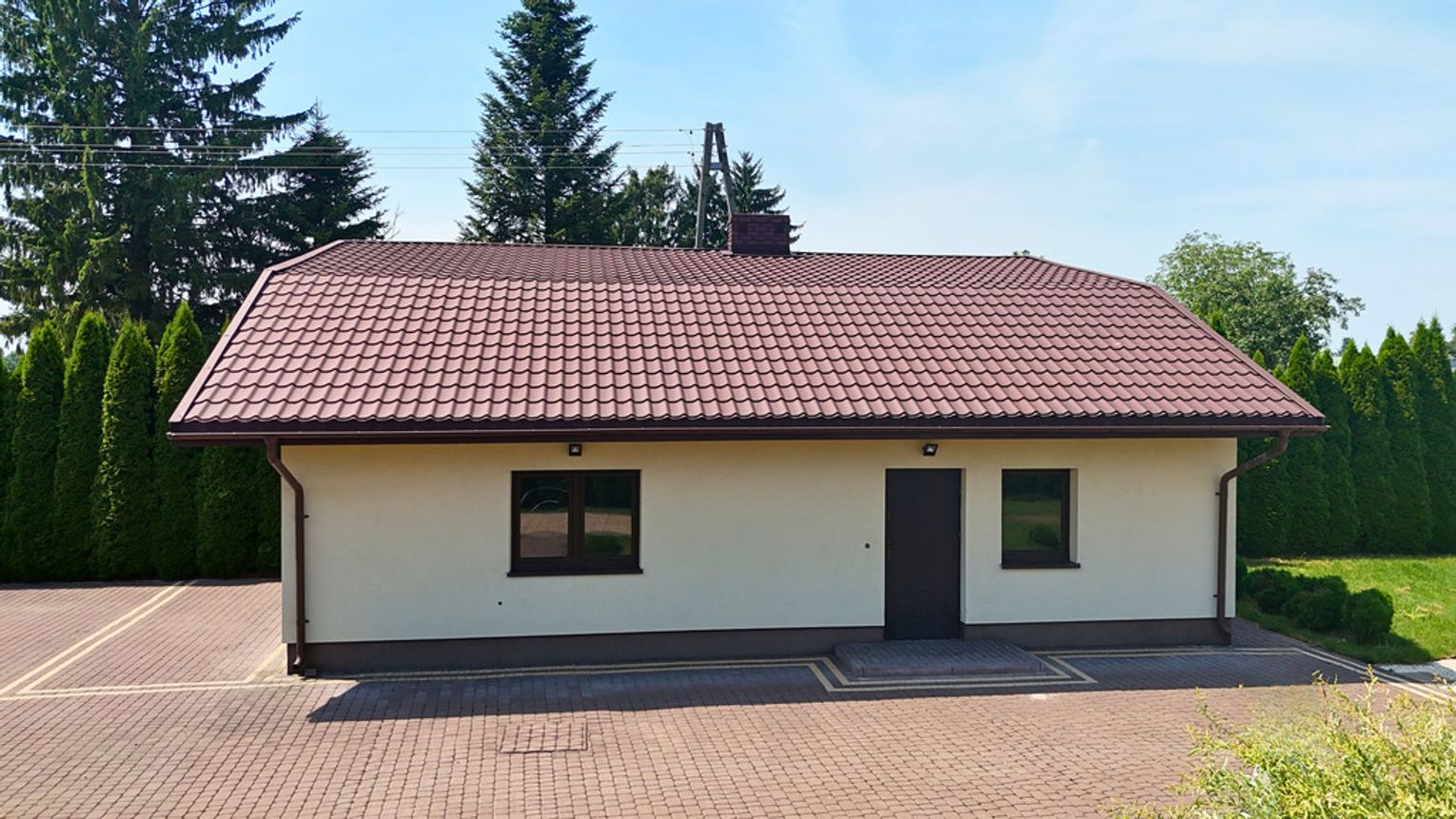 - Wybudowany w 2011, parterowy z pustaków gazobetonowych