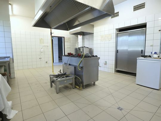 Parter - 109m2 - kuchnia i zaplecze kuchenne: pomieszczenia magazynowe, przygotowalnie, zmywalnia; pomieszczenia techniczne i sanitarne.