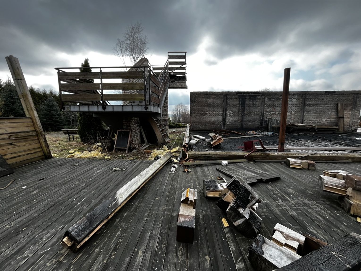 *Fundamenty zniszczonej w pożarze części restauracyjnej Karczmy z pozostałymi łazienkami oraz klatką schodową.