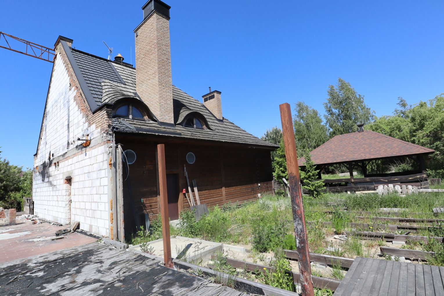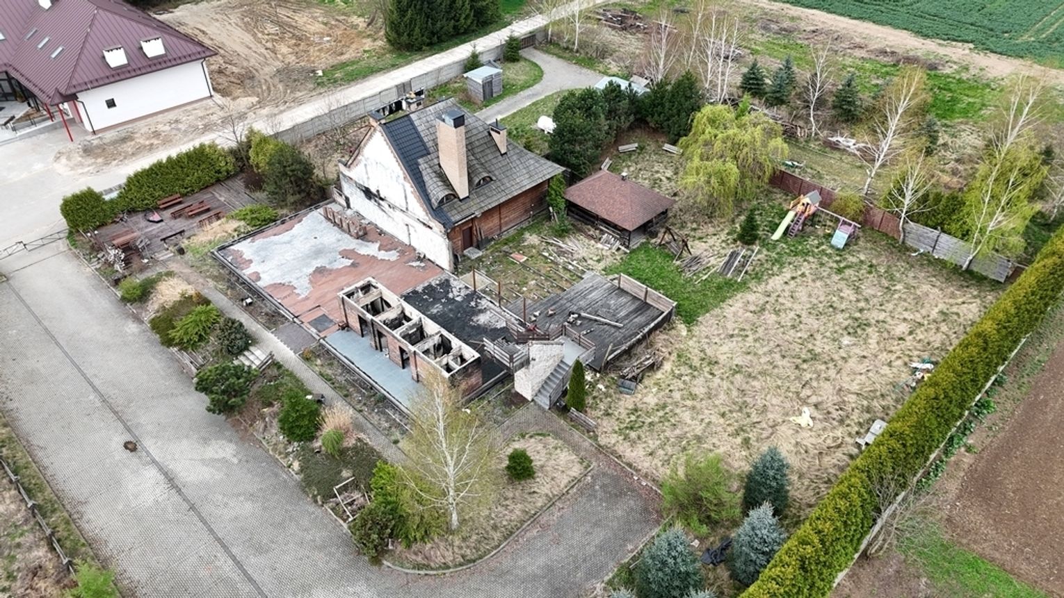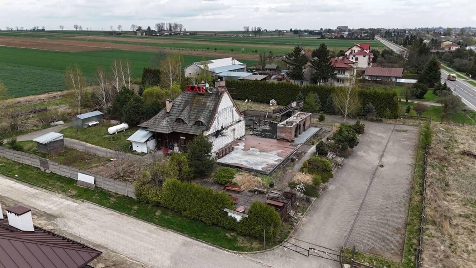 Główna część o konstrukcji drewnianej doznała uszkodzeń w wyniku pożaru. Pomimo tego, murowana struktura budynku pozostaje w dobrym stanie, wymagając jedynie niewielkich prac remontowych. Nieruchomość wymaga gruntownej odbudowy zgodnie ze starym przeznaczeniem lub adaptacji do nowych funkcji. Pozostały budynek, elementy konstrukcyjne i fundamenty mogą być punktem wyjścia do stworzenia własnego biznesu w rozpoznawalnym miejscu na mapie gminy. Duża działka umożliwia realizację kolejnych pomysłów, bez obaw o brak przestrzeni.