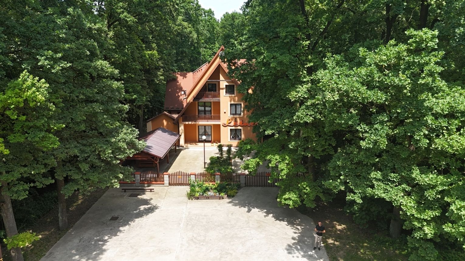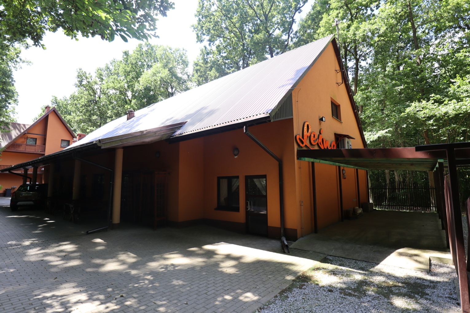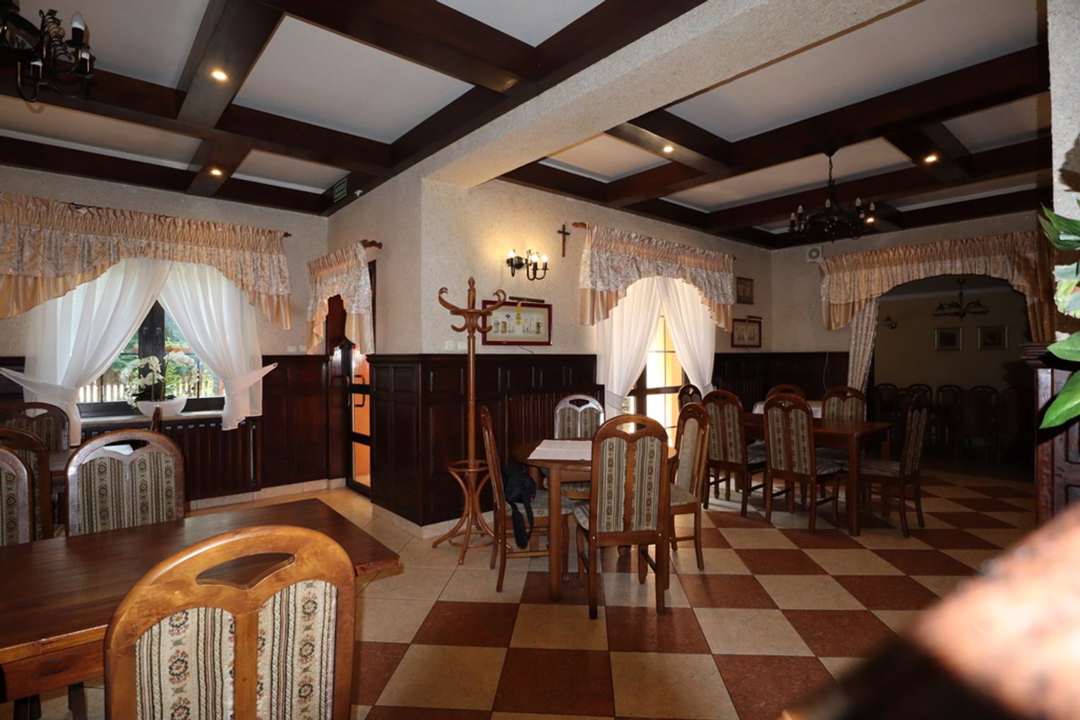 Nieruchomość zabudowana budynkiem głównym, w którym na parterze mieści się restauracja i sala bankietowa oraz bardzo duże zaplecze kuchenne, na piętrze są 3 pokoje dla gości i apartament z łazienką. W dalszej części działki znajduje się duża sala weselna. Wszystko na działce 54 ar.