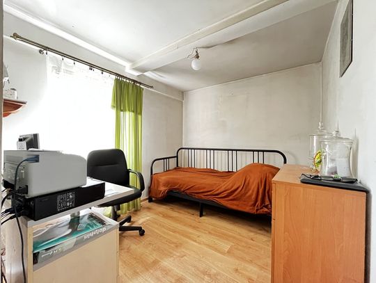 * składa się z 2 pokojów, kuchni, łazienki z WC i ganku.