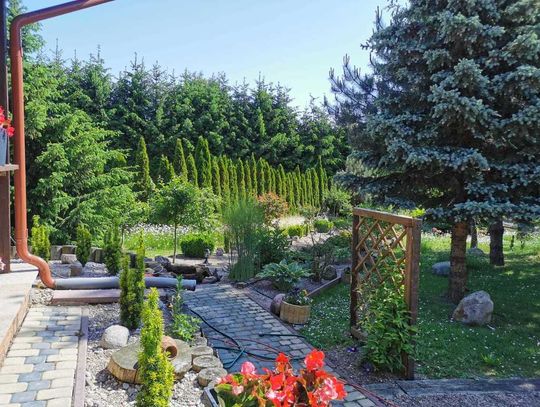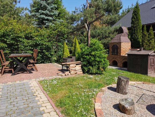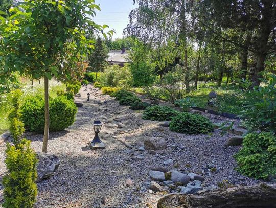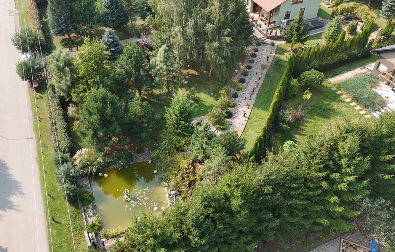Pięknie zagospodarowany ogród z fontanną i oczkiem wodnym to idealne miejsce na relaks wśród zieleni. Grill wraz z wędzarnią są kolejnym atutem tej nieruchomości.