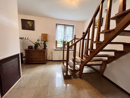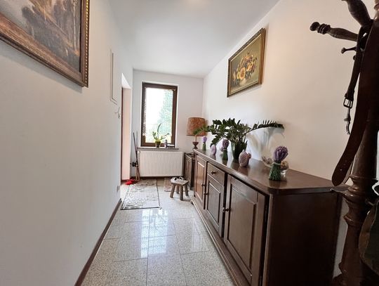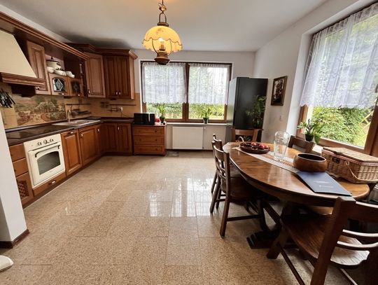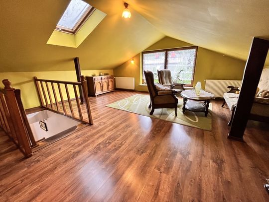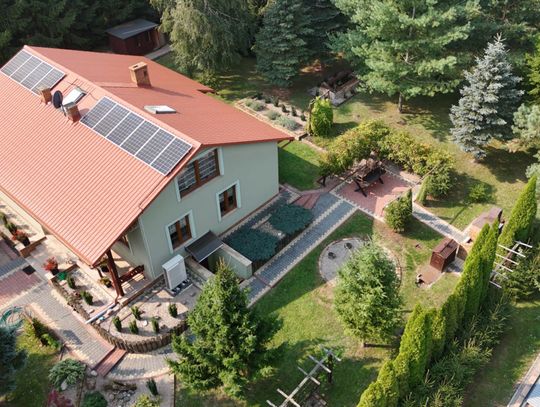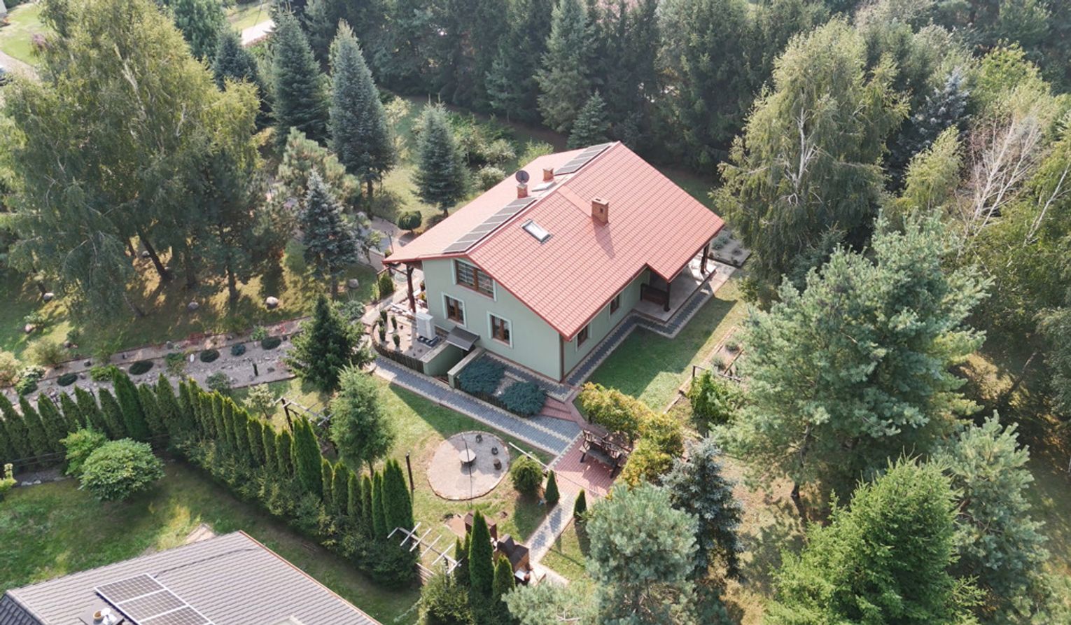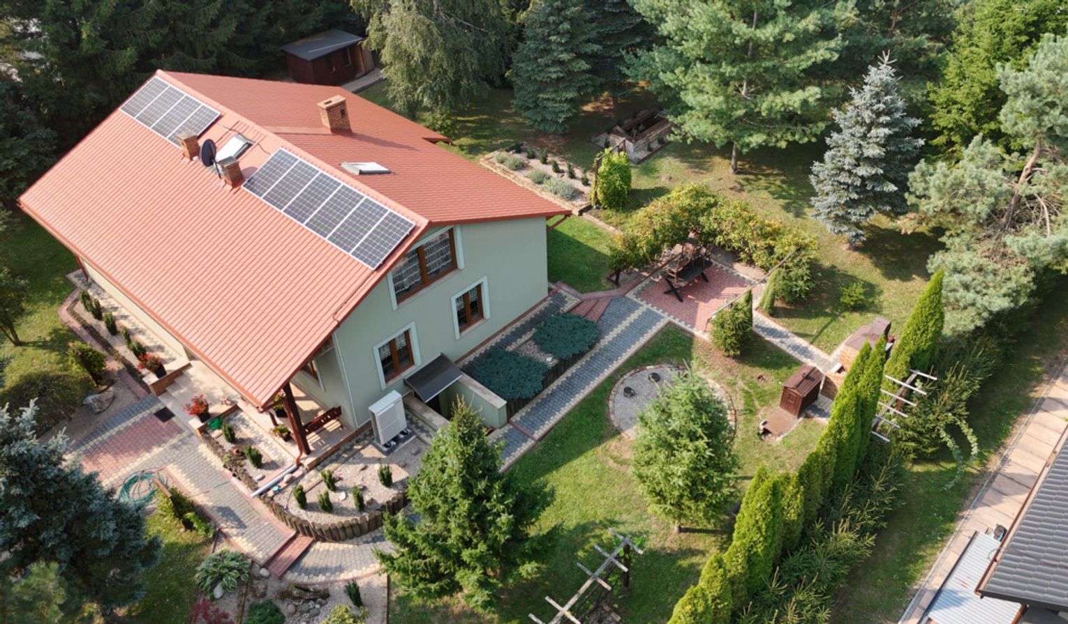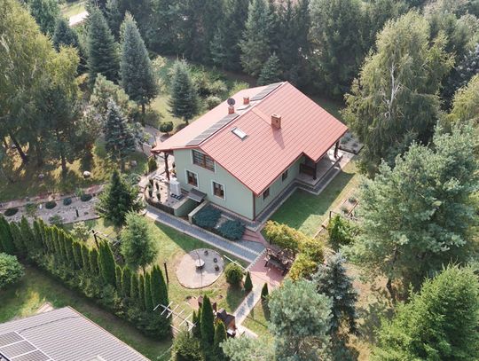 Dodatkowym atutem jest energia słoneczna, dzięki której rachunki za prąd staną się przeszłością. Panele fotowoltaiczne, które znajdują się na dachu nieruchomości, to doskonały sposób na oszczędności oraz dbałość o środowisko naturalne. Dodatkowo właściciel zainwestował w nową pompę ciepła, która jeszcze bardziej zwiększa komfort życia. Dla miłośników jesiennych wieczorów przy kominku też się coś znajdzie, gdyż na parterze w salonie znajduje się kominek z płaszczem wodnym.