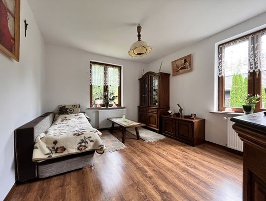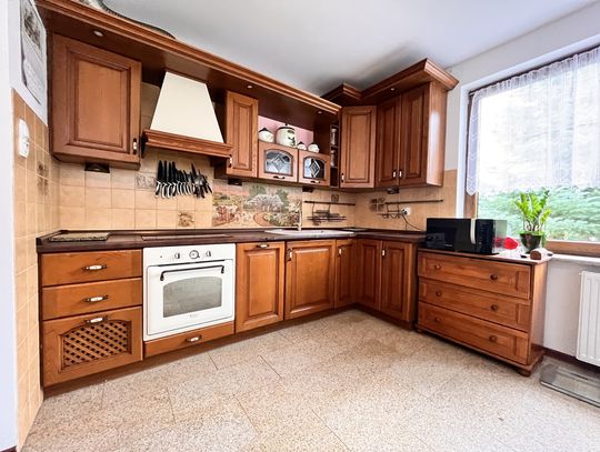 Po przekroczeniu progu poczujesz się jak w domu pełnym ciepła i uroku. Przestronne salony z dużymi oknami, które wpuszczają mnóstwo naturalnego światła, to idealne miejsca na wypoczynek i relaks. Słoneczna kuchnia to raj dla kulinarnych pasjonatów, gdzie przygotujesz pyszne posiłki dla całej rodziny. W domu znajdują się także trzy przytulne pokoje, gdzie każdy z domowników znajdzie swoje wymarzone miejsce do odpoczynku oraz dwie eleganckie łazienki, które dodatkowo zwiększą komfort użytkowania.