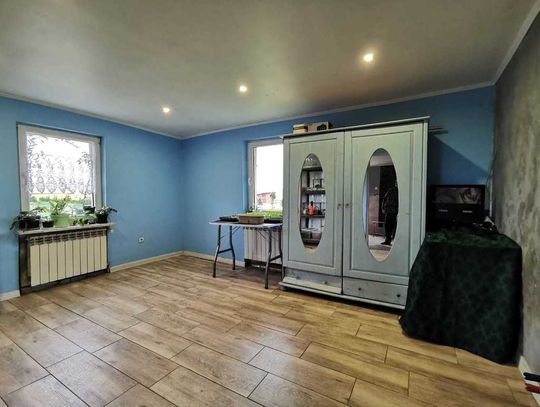 Wyposażenie i Udogodnienia: Dom został starannie wyposażony, aby zapewnić mieszkańcom maksymalny komfort i wygodę. Piec na ekogroszek zapewnia nie tylko skuteczne, ale i ekonomiczne ogrzewanie, natomiast nowa instalacja elektryczna oraz nowe poszycie dachowe gwarantują bezpieczeństwo i stabilność budynku przez wiele lat.